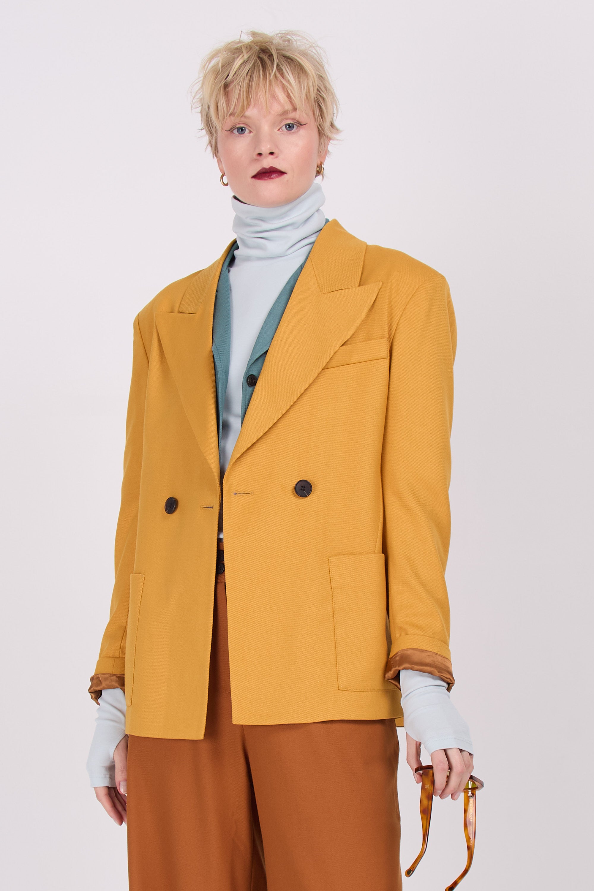 Davos ist mit seiner doppelten Knopfreihe, der eleganten Schnittführung, dem breiten Revers und der kürzeren Länge der eleganteste Blazer im breiten Sortiment.