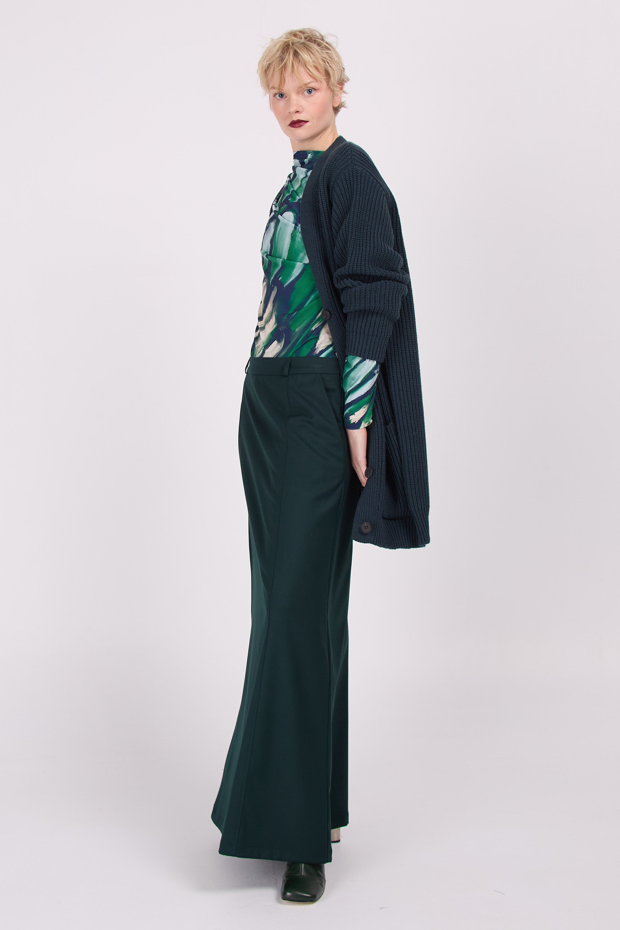 Willemstad – Lange Wollstrickjacke in Kieferngrün