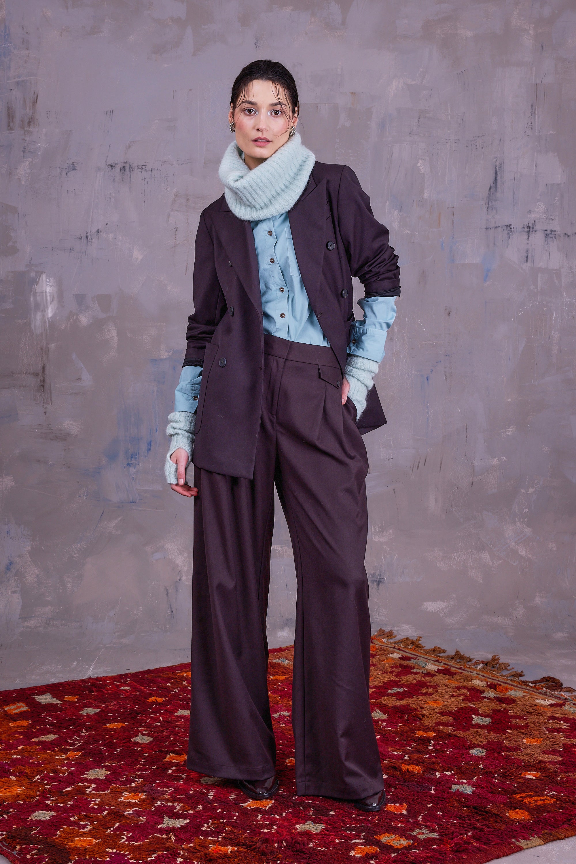 Gerippter Schlauchschal, gestrickt in Belgien aus einer wunderbar warmen Mischung aus Mohair und Merinowolle. Vervollständigen Sie das Set mit den Gibson Armwärmern.