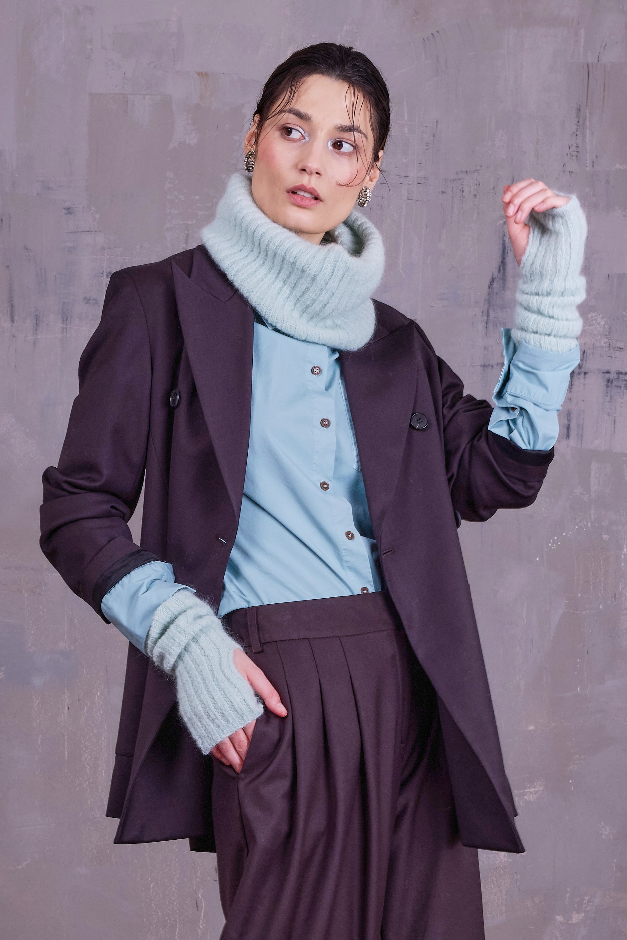 Gestrickt in Belgien aus einer schönen, warmen Mischung aus Mohair und Merinowolle.
