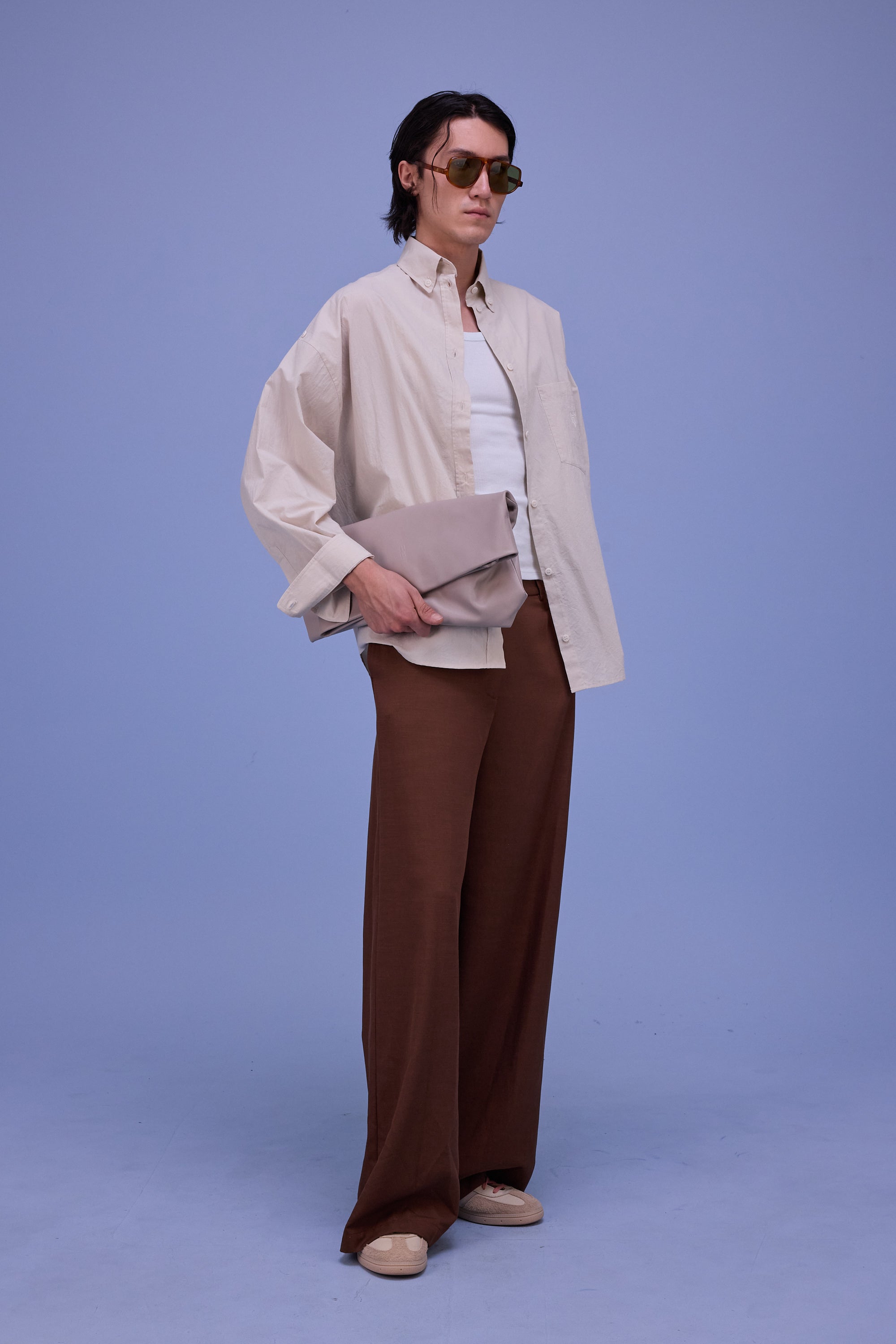 Auch in dieser Saison gibt es wieder überraschende Hemden: Das lange Hemd Harper hat einen langen Ärmel, den man an der Schulter mit einem Knopf befestigen kann, wodurch ein drapierter kurzer Ärmel entsteht. Auf der Brusttasche ist das NV-Emblem aufgestickt.