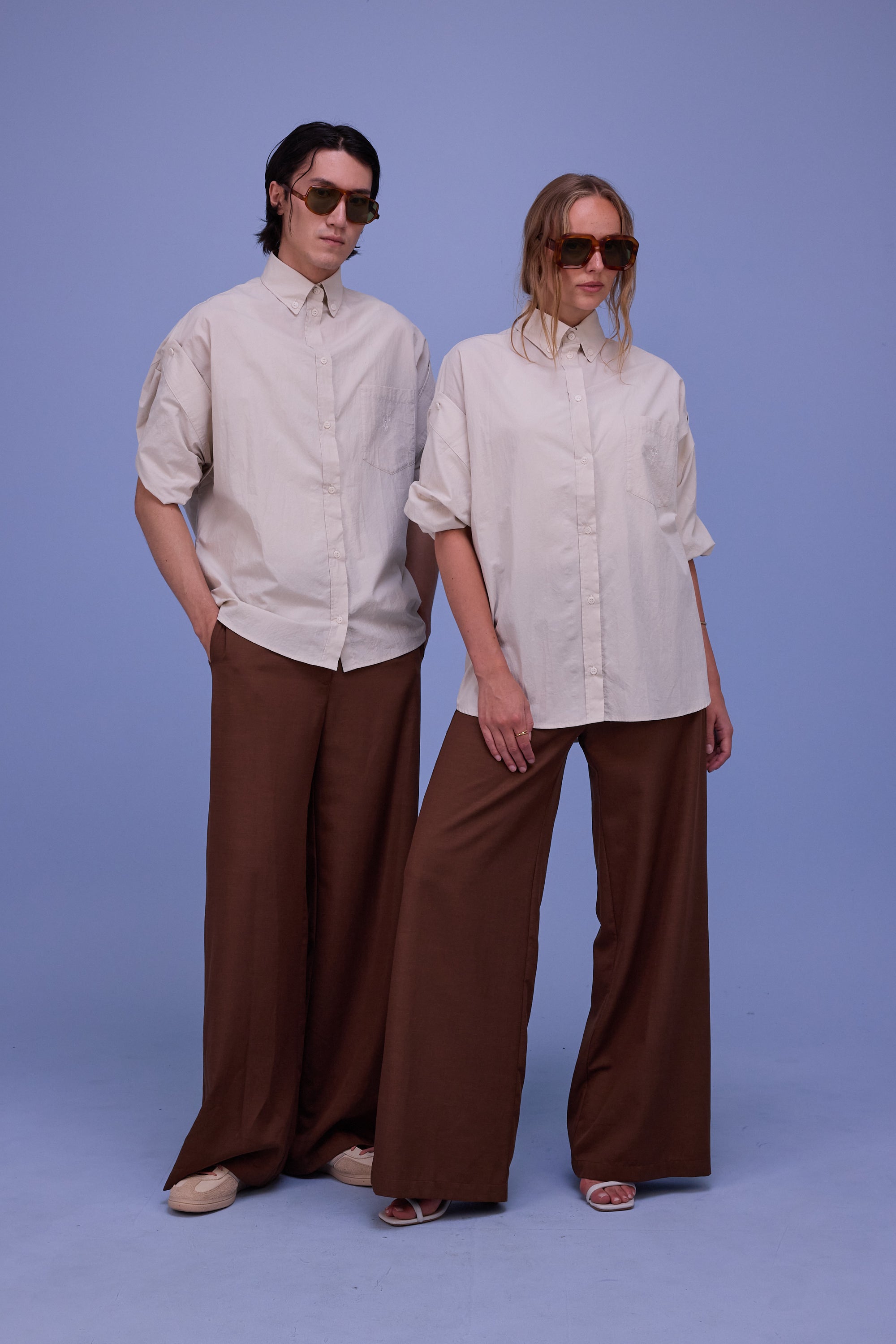 Gefertigt aus „crinkled Popeline“, Baumwolle mit einer natürlichen Knitteroptik.