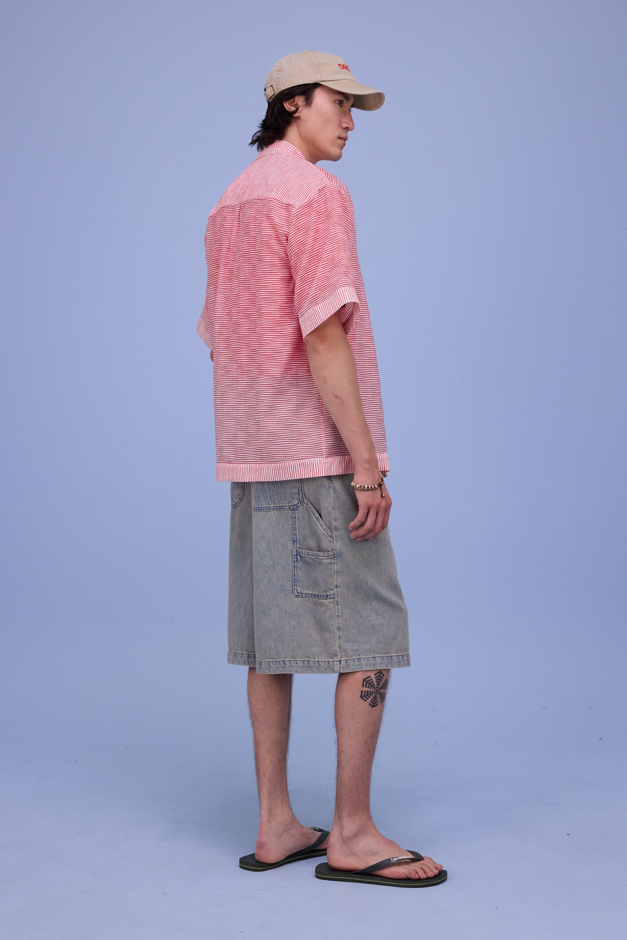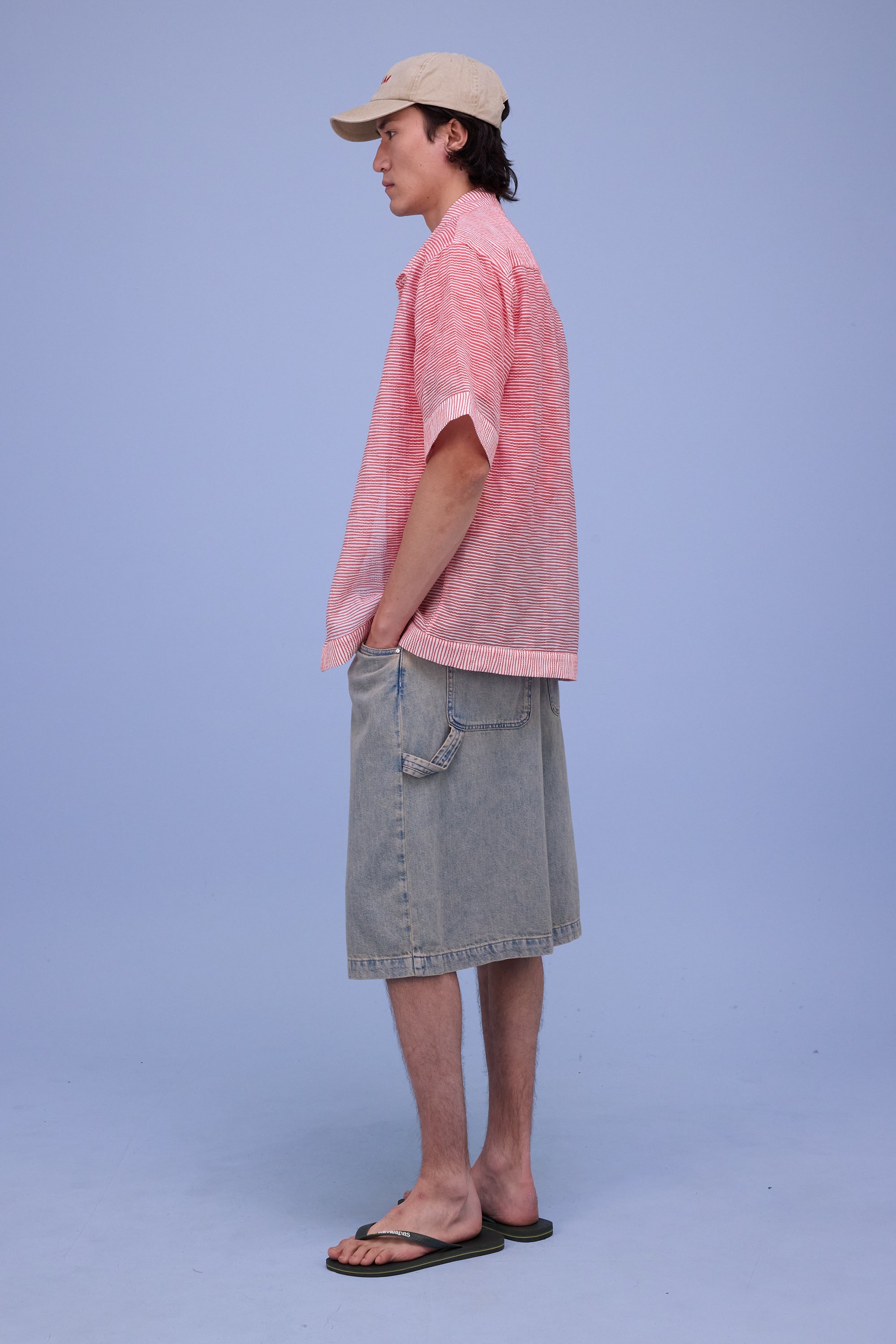 Unisex locker sitzendes Hemd mit halblangen Ärmeln aus einem semitransparenten Stoff mit verspieltem horizontalem Streifenmuster. Das Hemd lässt sich gut mit einem T-Shirt oder Top darunter kombinieren.