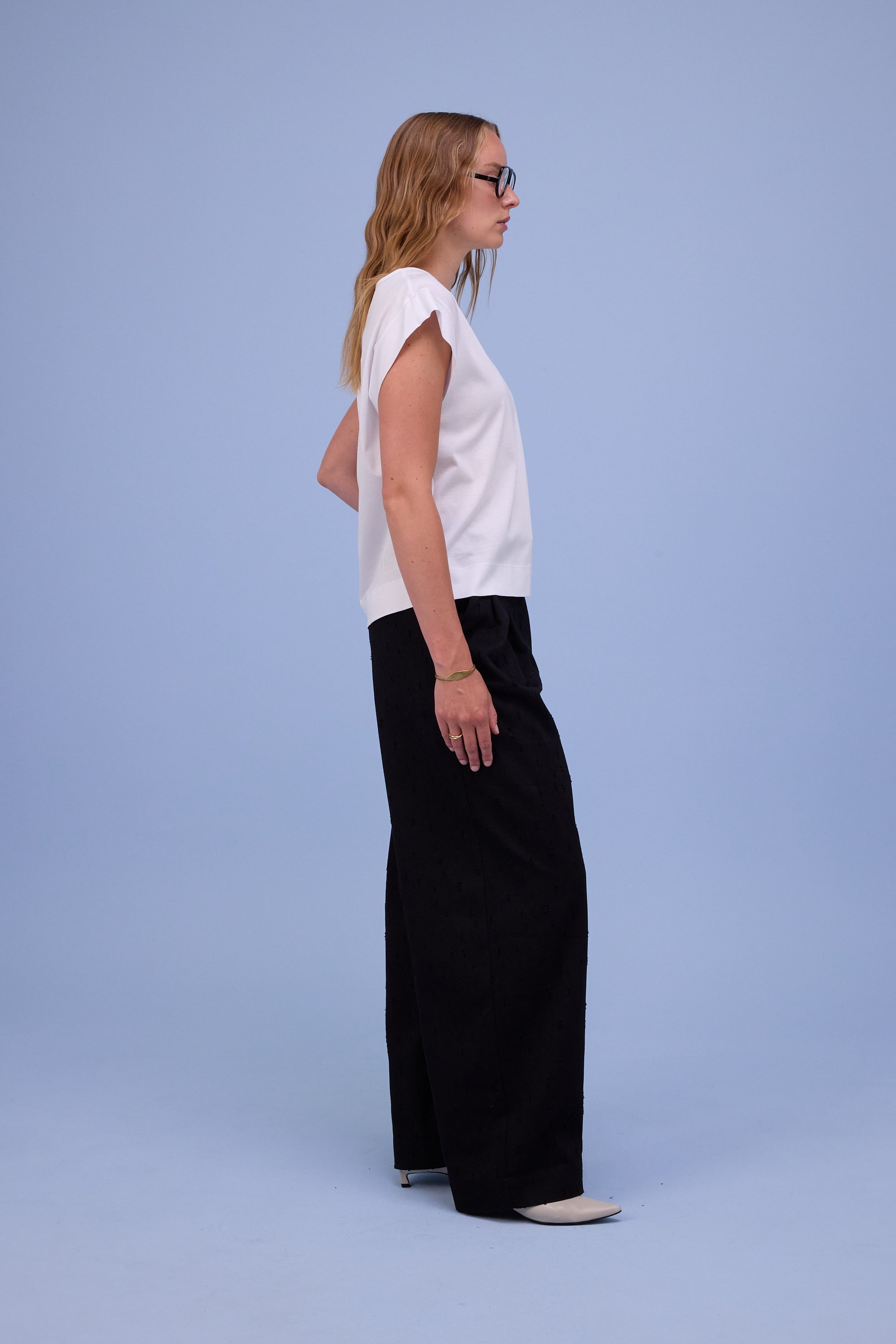 T-Shirt mit kurz geschnittenem Ärmel aus Baumwoll-Modal-Jersey. Dieses gerade Modell mit U-Boot-Ausschnitt ist seit einigen Sommern ein neuer Lieblings-Basic.