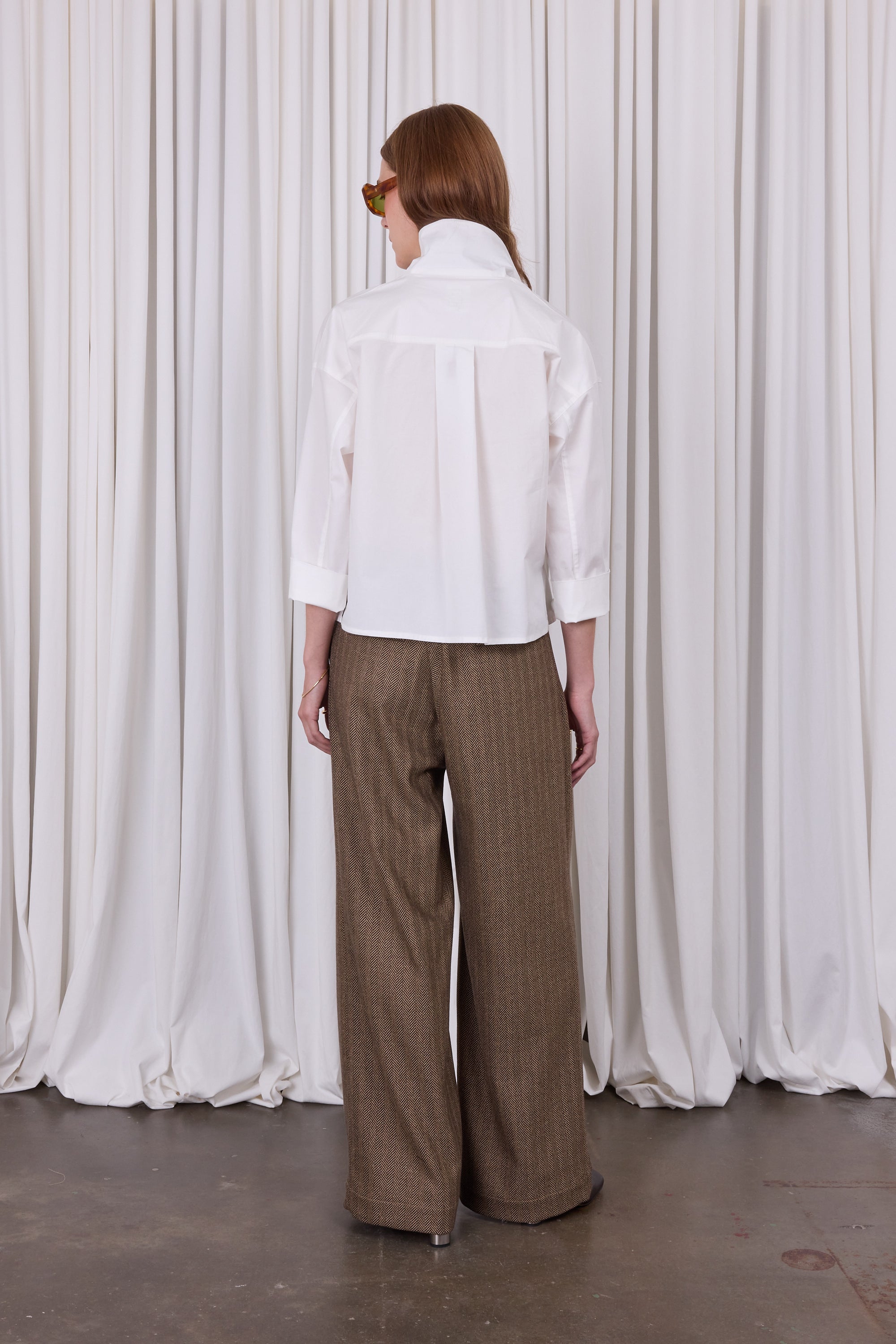 After two seasons, Cezar has become an indispensable part of the collection. Cezar has generous volume in the legs, the pleats ensure an attractive flow and the stitched tucks add length to your silhouette. This version has a herringbone pattern in tasty coffee colours.