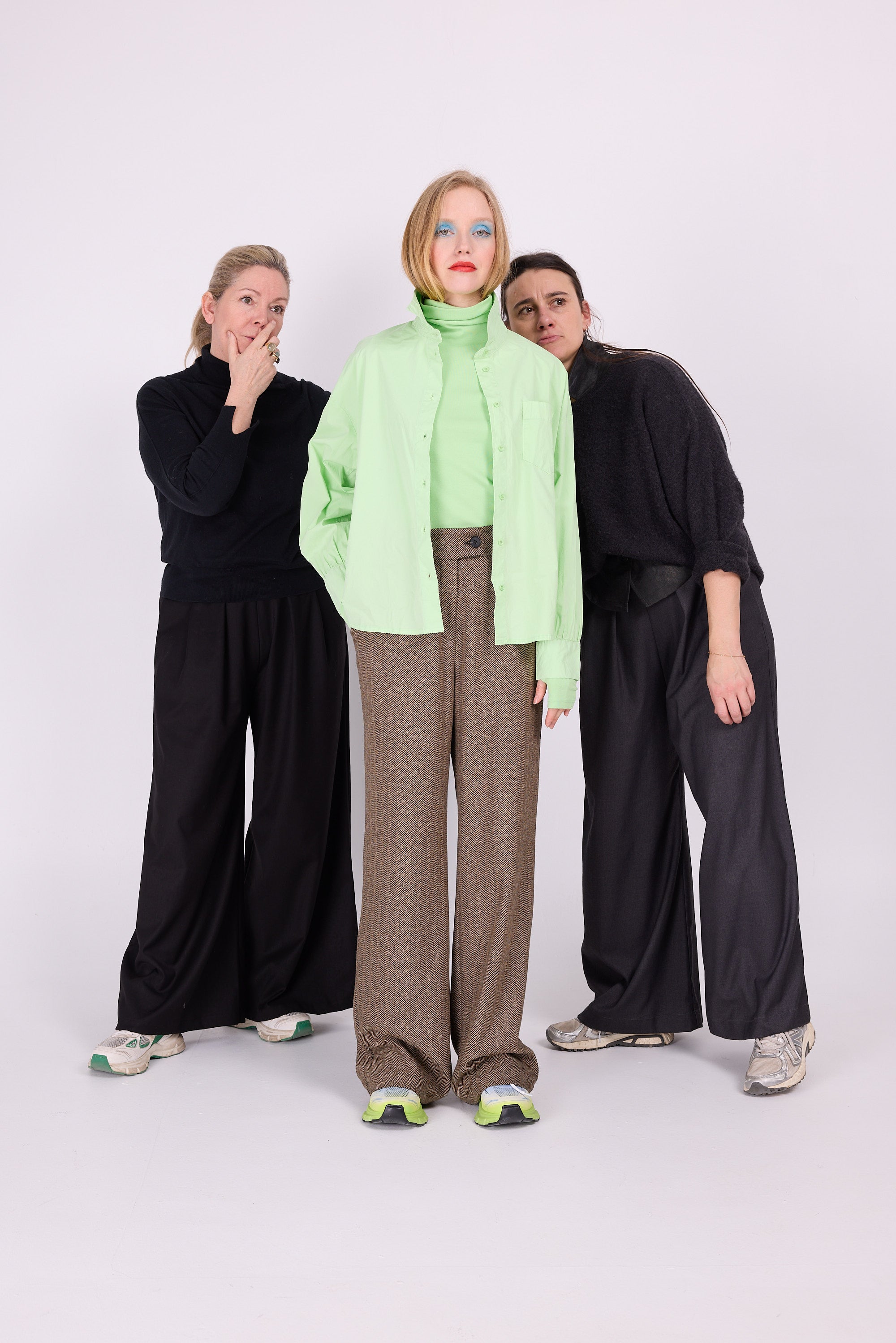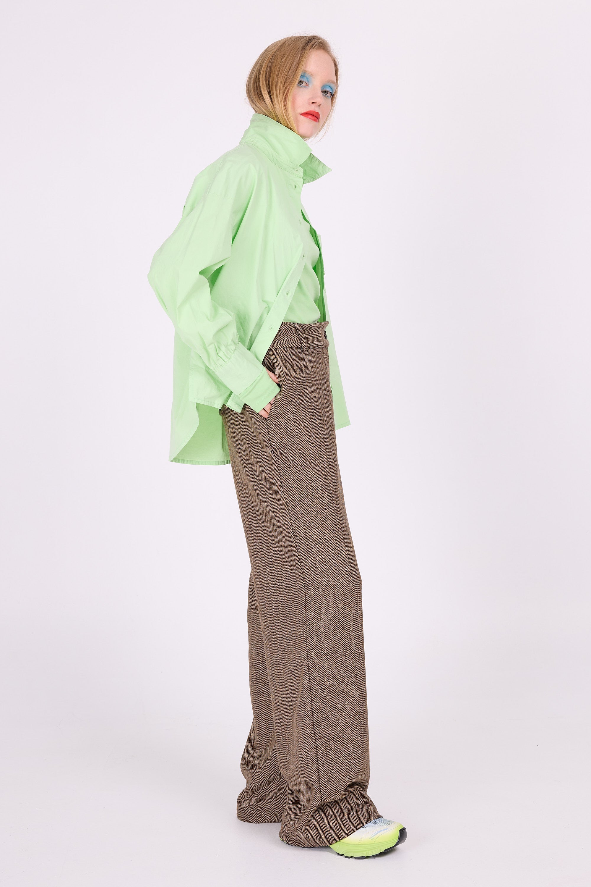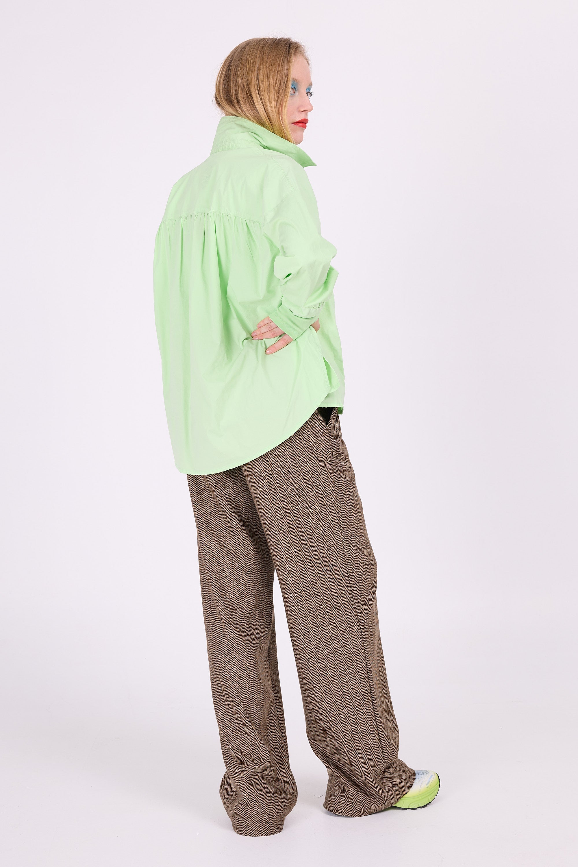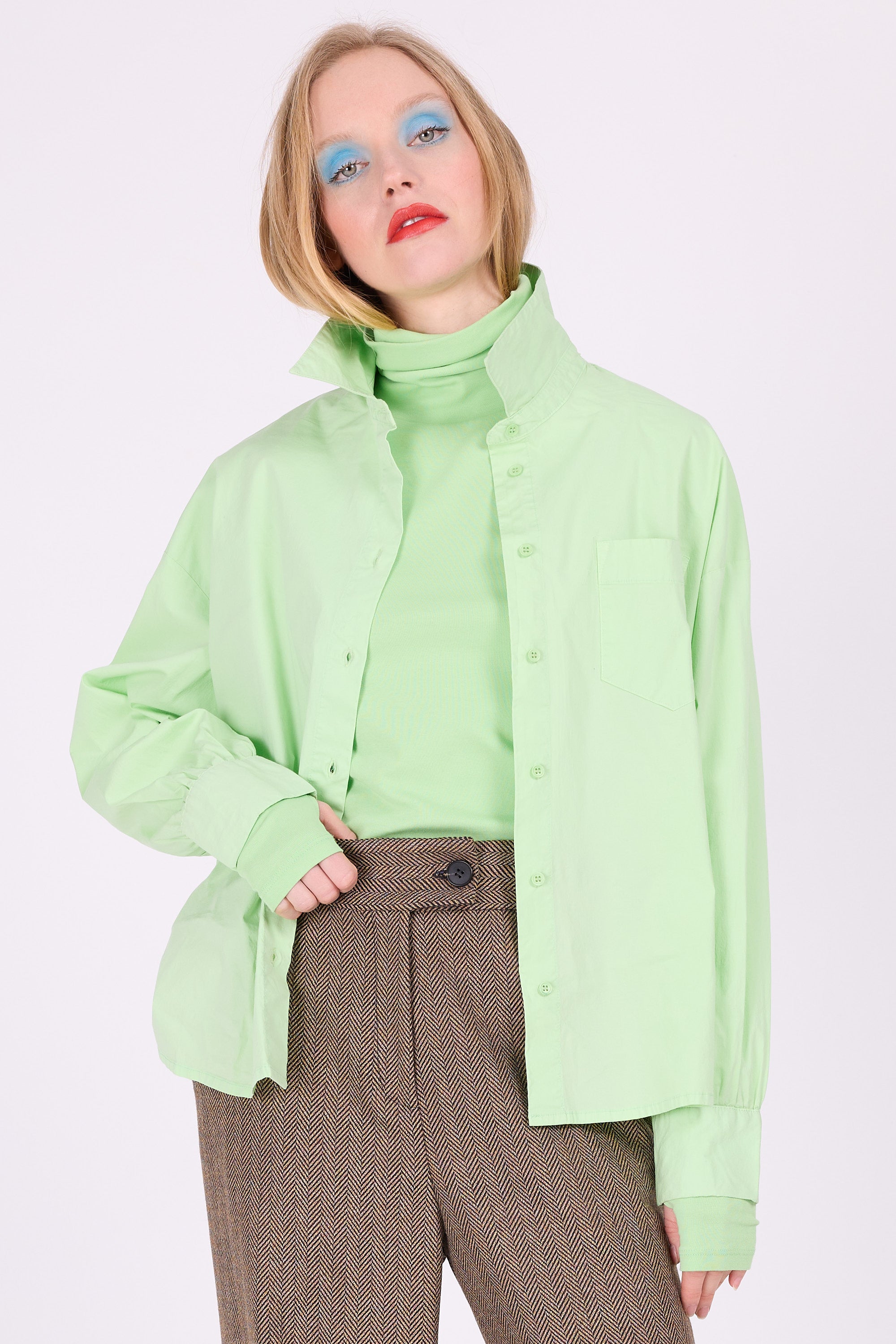 Wide-fitting shirt with dropped shoulders, puffed sleeves and gathering on the back. Made of airy stretch cotton poplin.