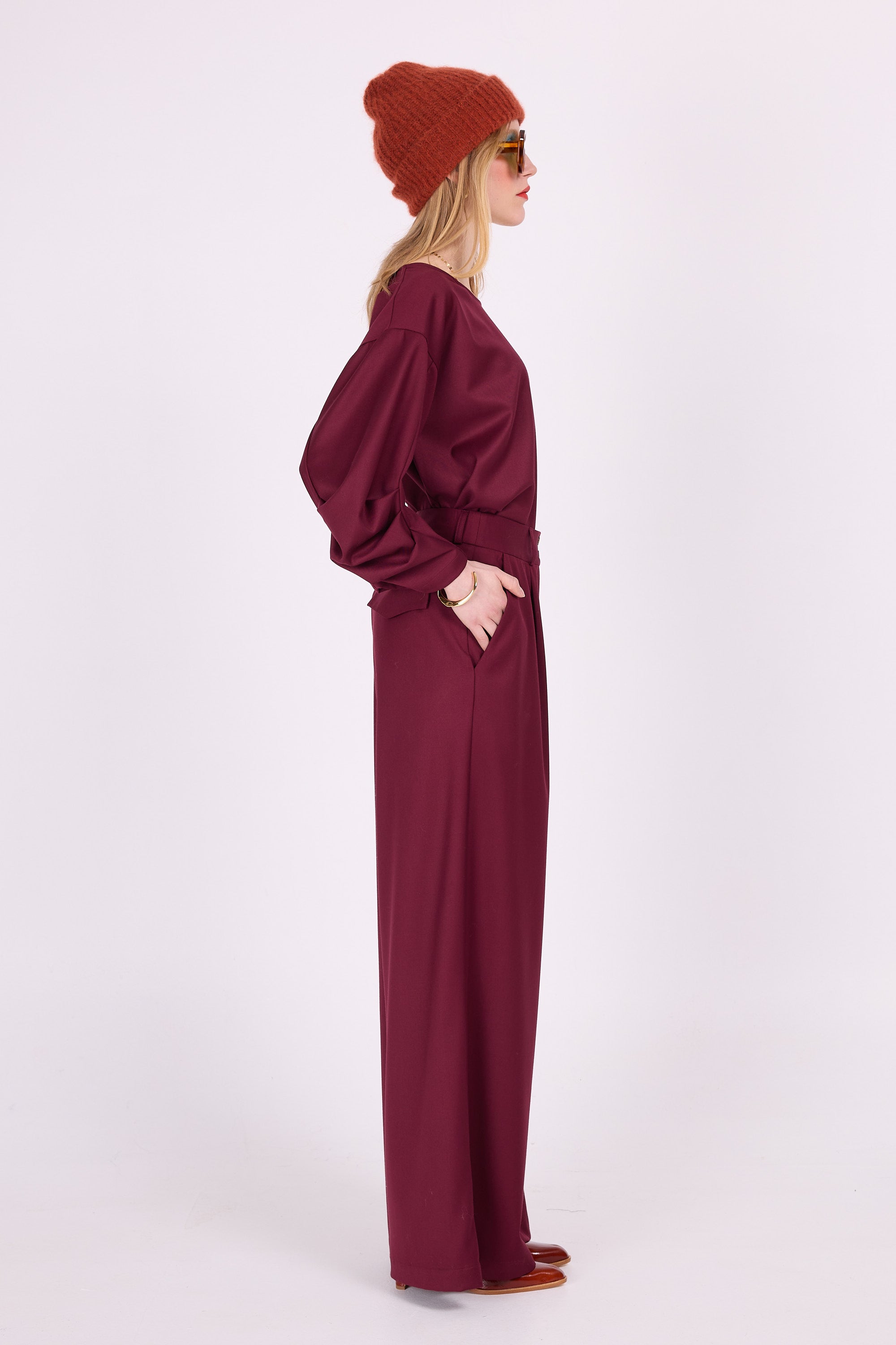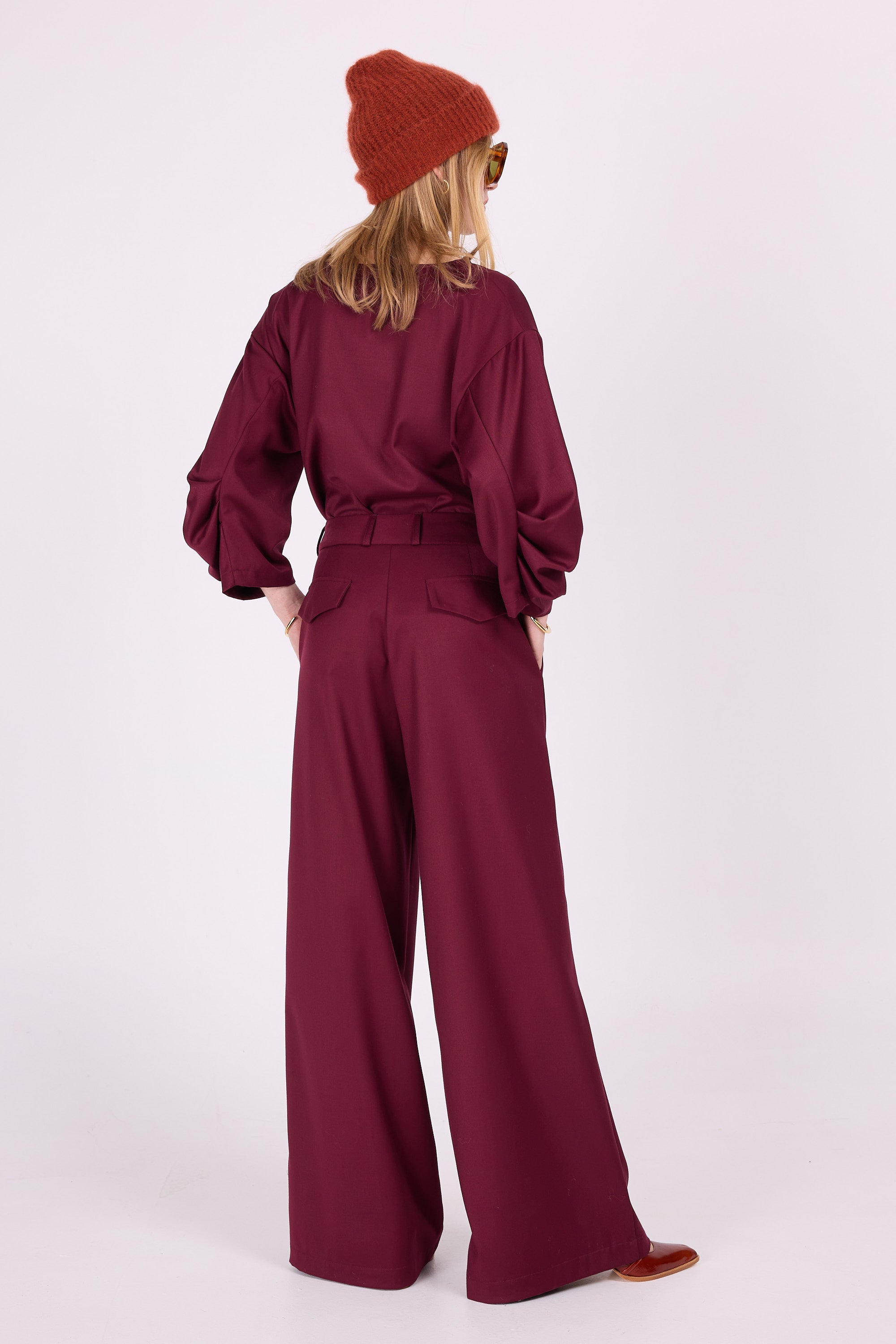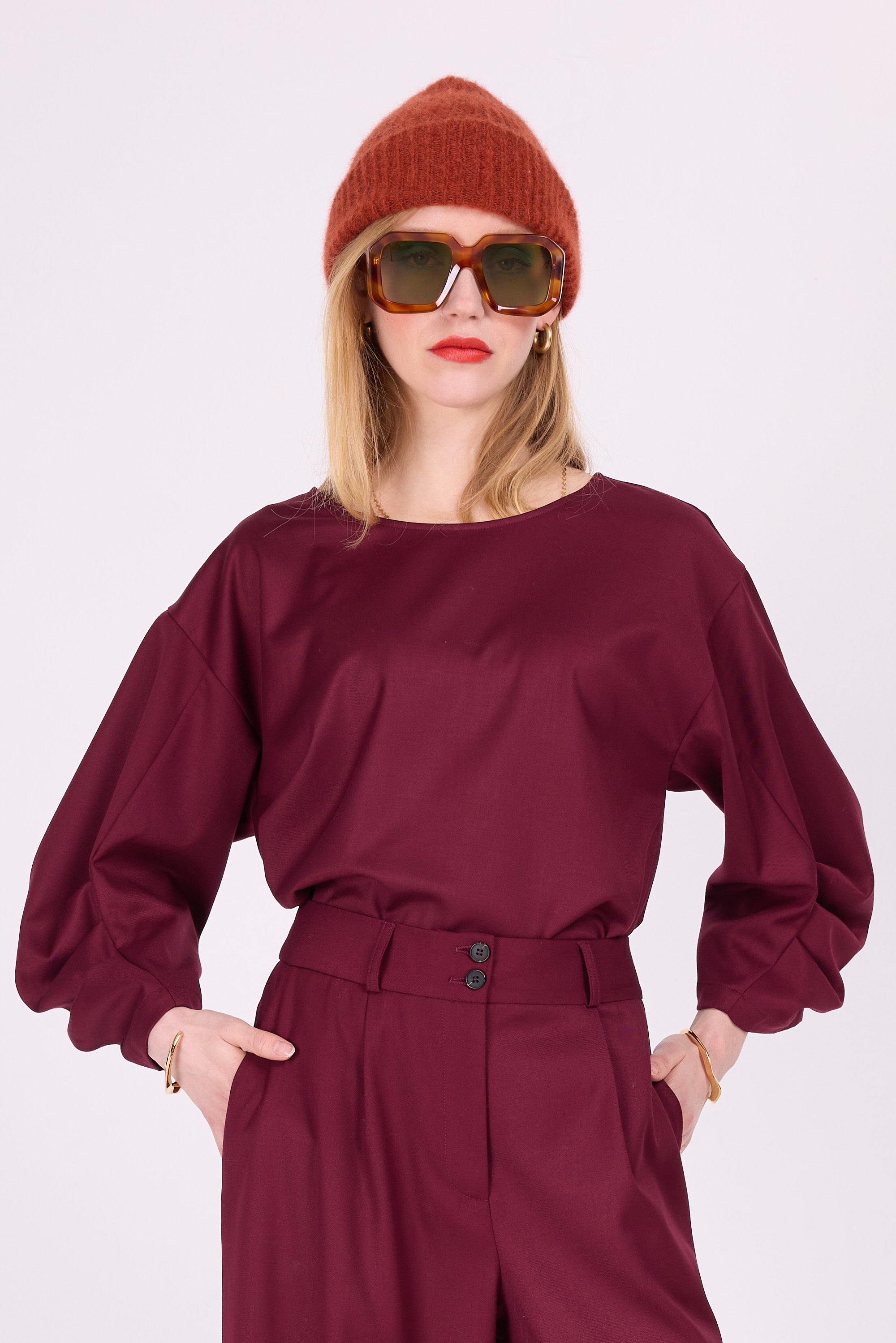 Short twill blouse with a subtle sheen. The small pleats on the sleeves create a sculpted effect. Designed to be worn as a fabulous set with the Clinton trousers in the same fabric.