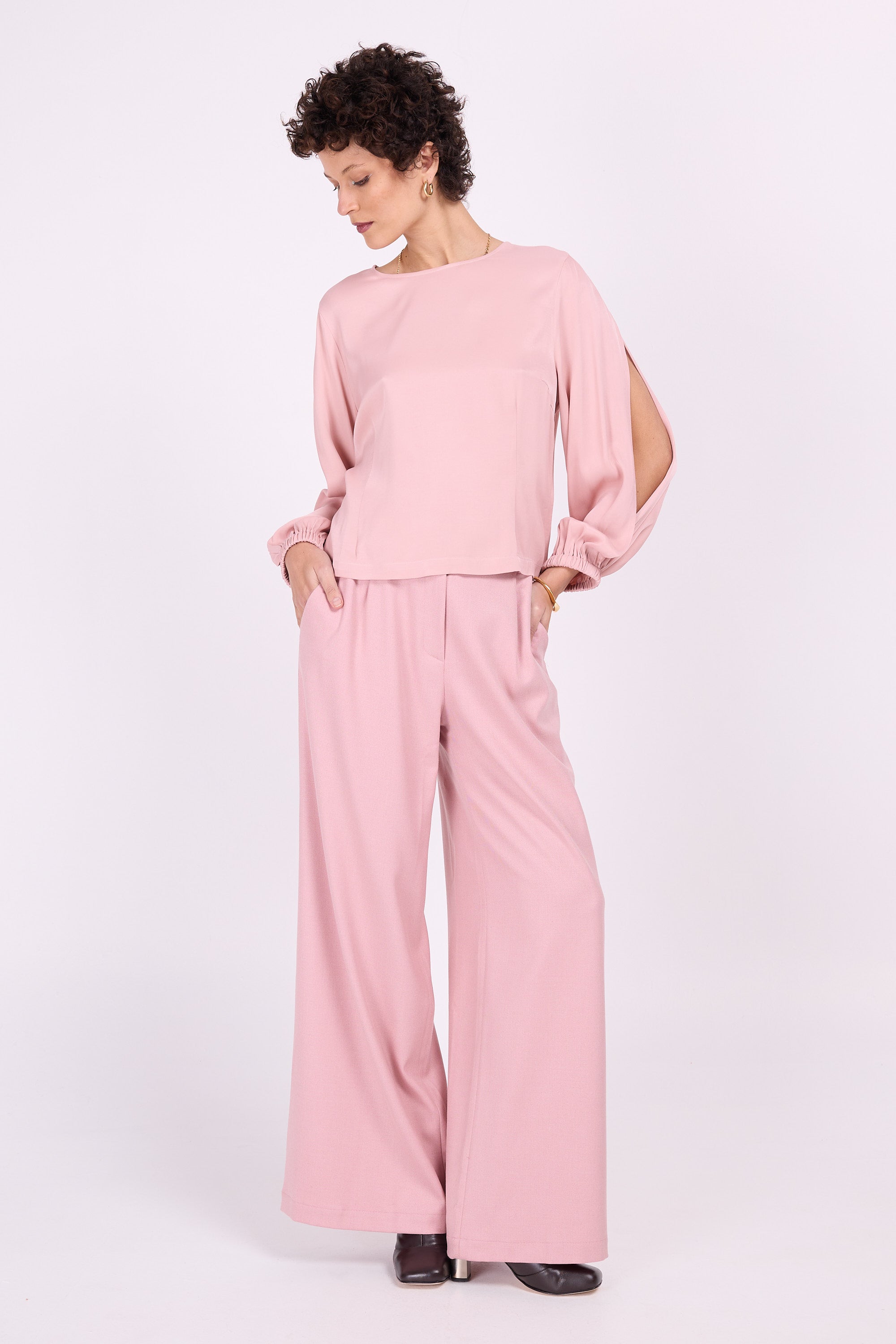 Stylish wide legs, a high waist and subtle pleats give these trousers a feminine character with pizzazz. A bestseller for years. This season she comes in a range of colours in supple twill.