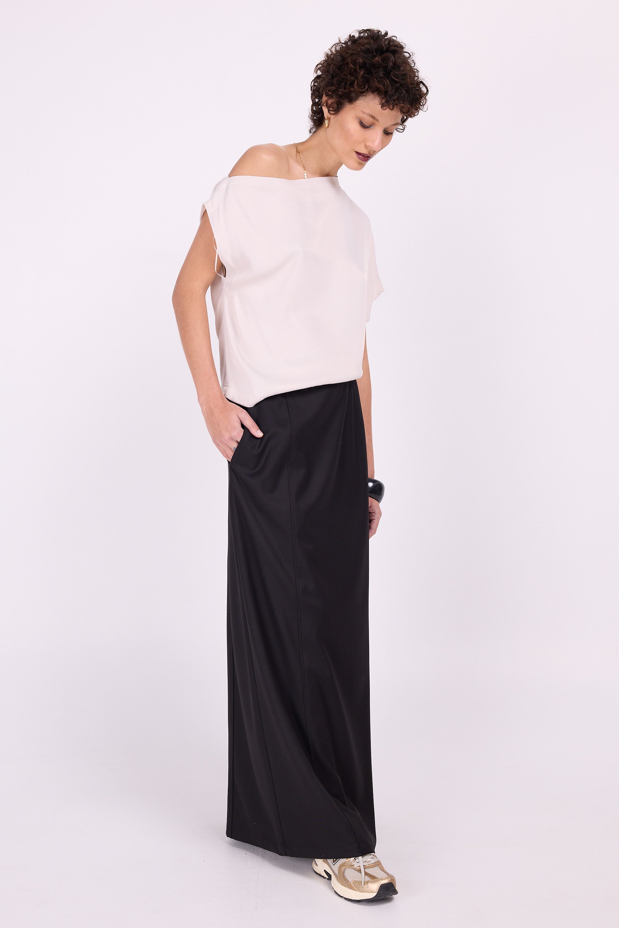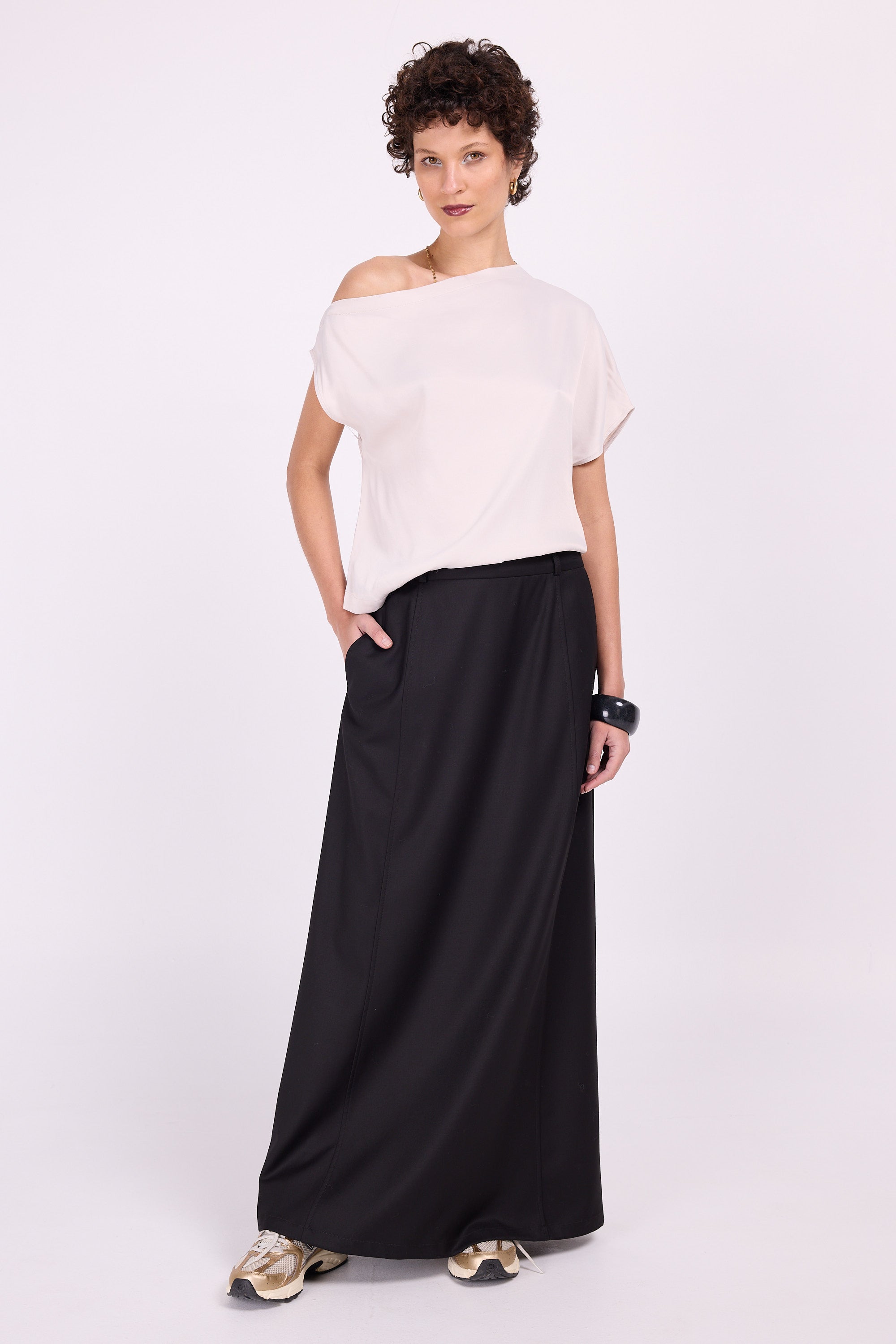 Ankle-length wide skirt in a beautiful twill with a subtle sheen. A classy alternative to all those winter trousers.