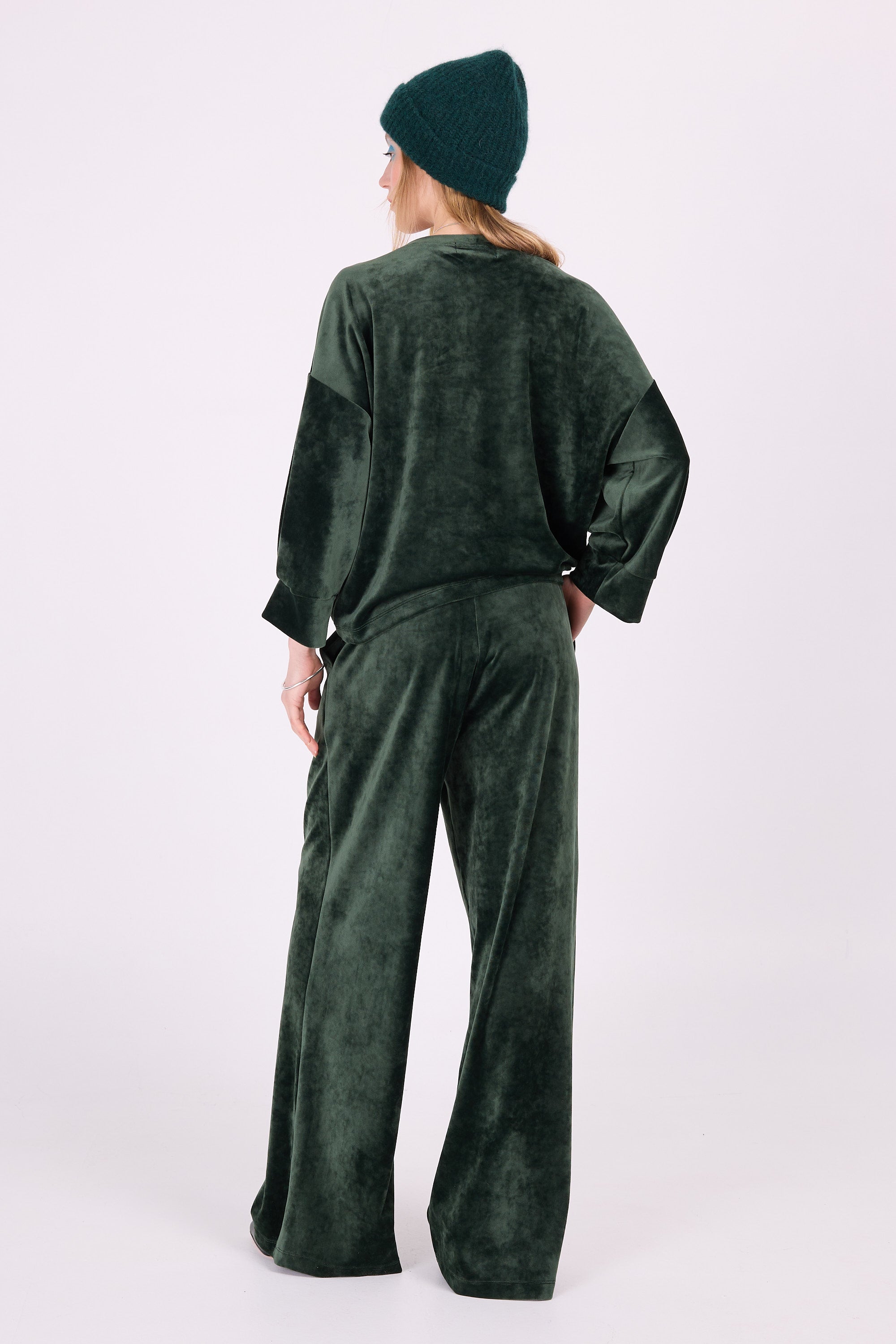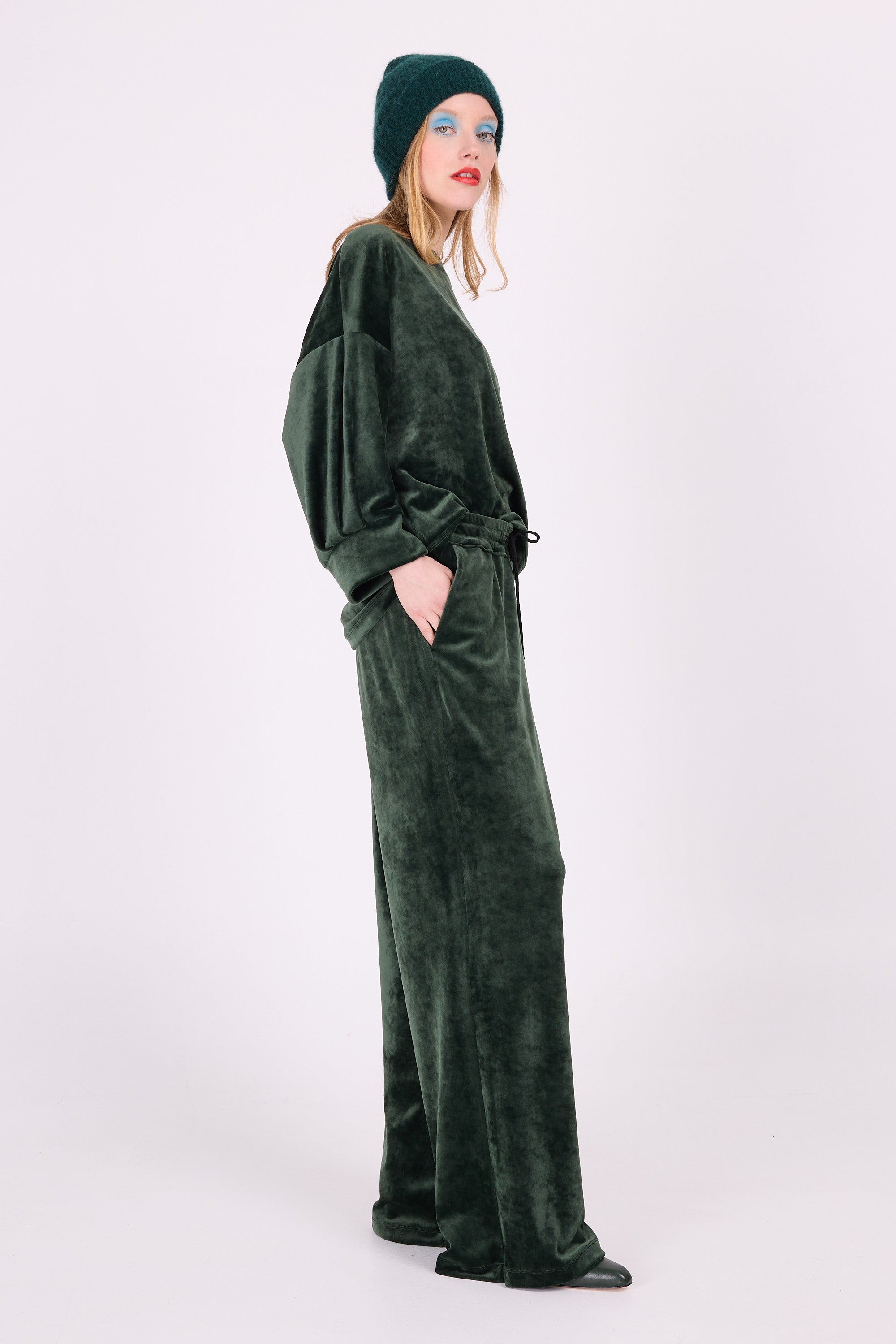Comfy trousers with wide legs on elastic waistband and waist drawstring. Made in silky soft velvet, so cozy and beautiful that you'll want to keep it on day and night.