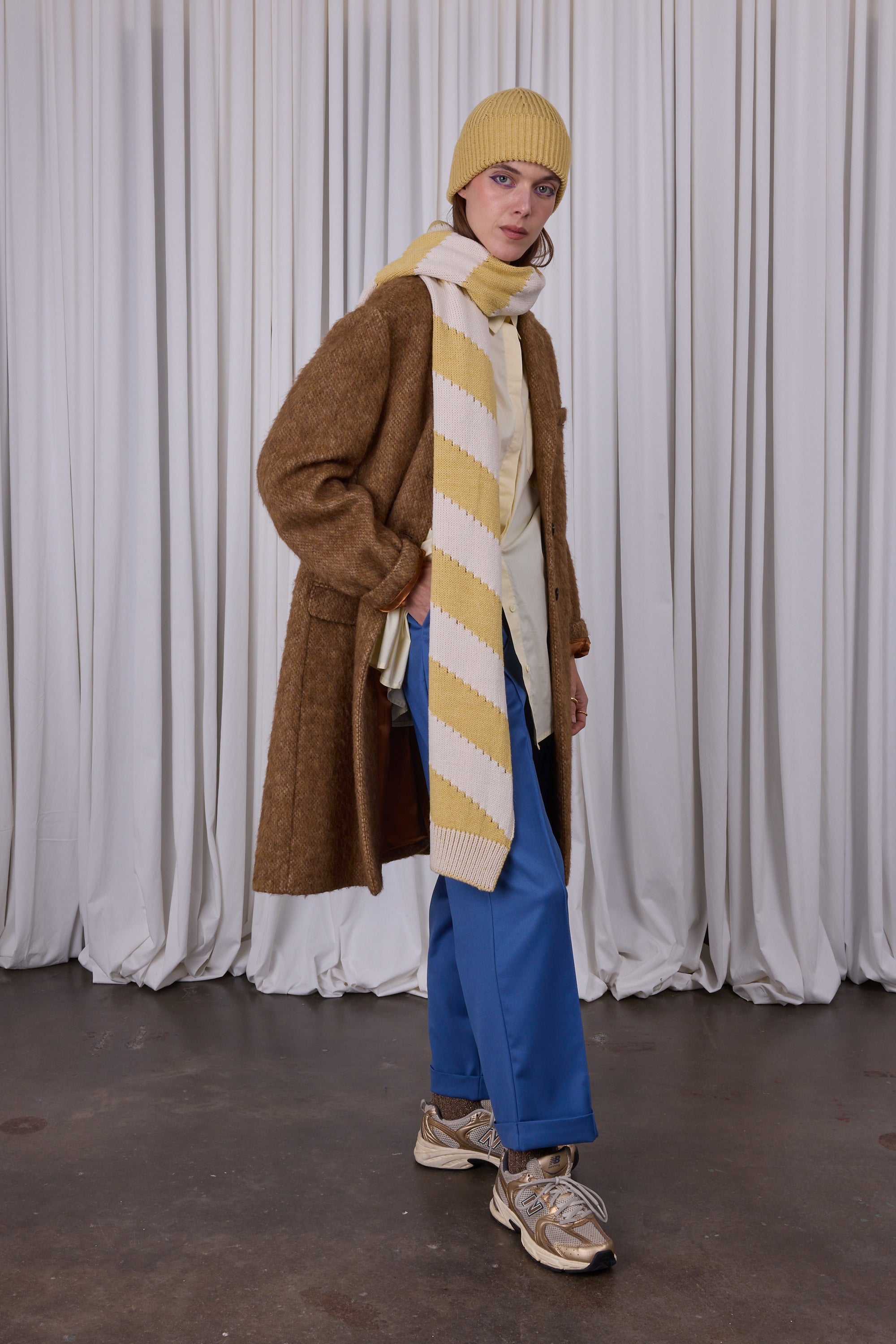 Not vertically, not horizontally, but playfully transversely run the stripes on the Wales scarf. Knitted in Belgium in a merino wool blend and available in four different colour blends. Complete the set with matching hat Wons and leg warmers Warren. Or are you going for a complete look with one of the many sweaters and cardigans in these colours?