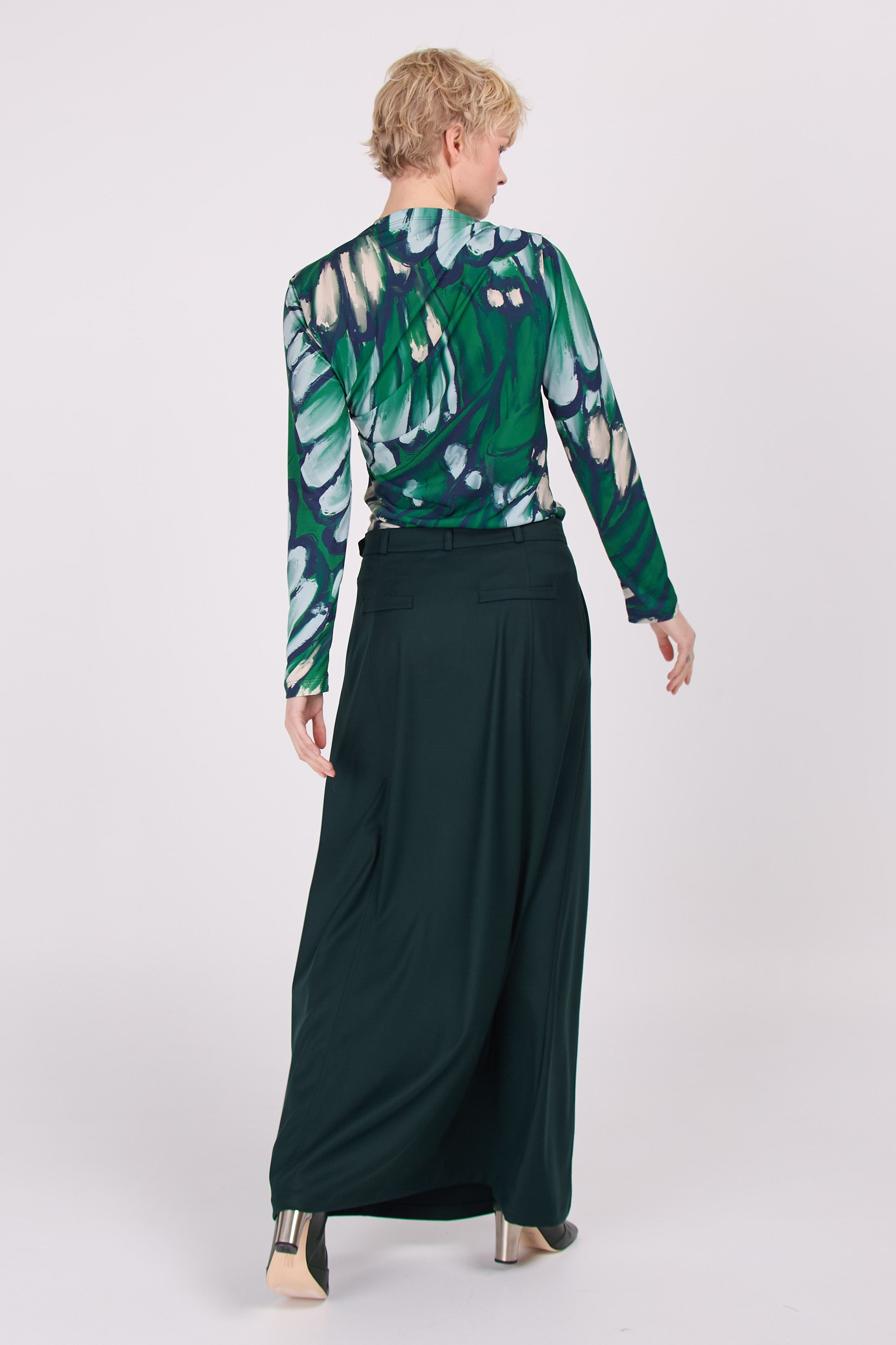 Ankle-length wide skirt in a beautiful twill with a subtle sheen. A classy alternative to all those winter trousers.