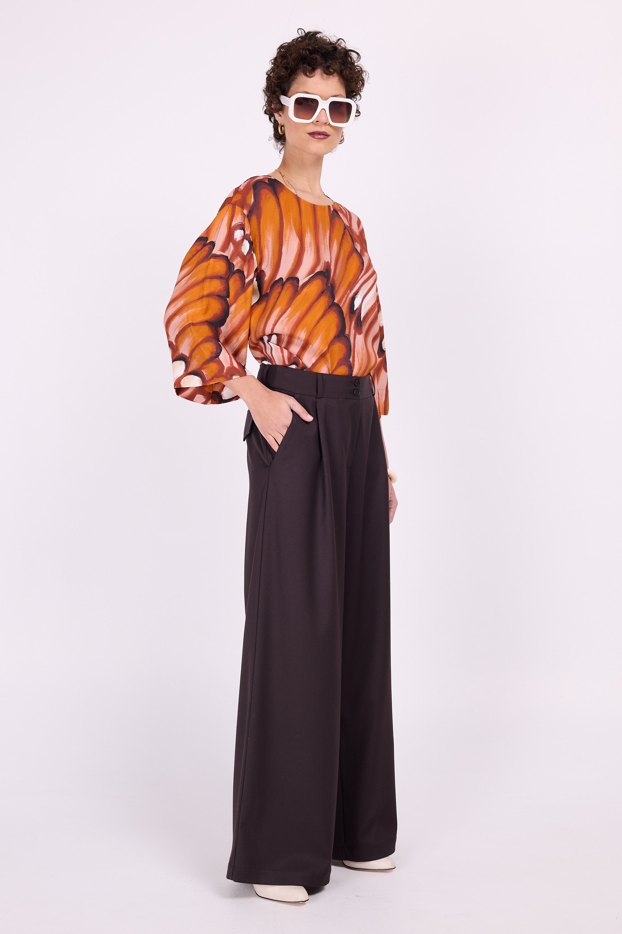 A blouse that lets the print speak for itself. The wide pleated sleeve brings an elegant twist.