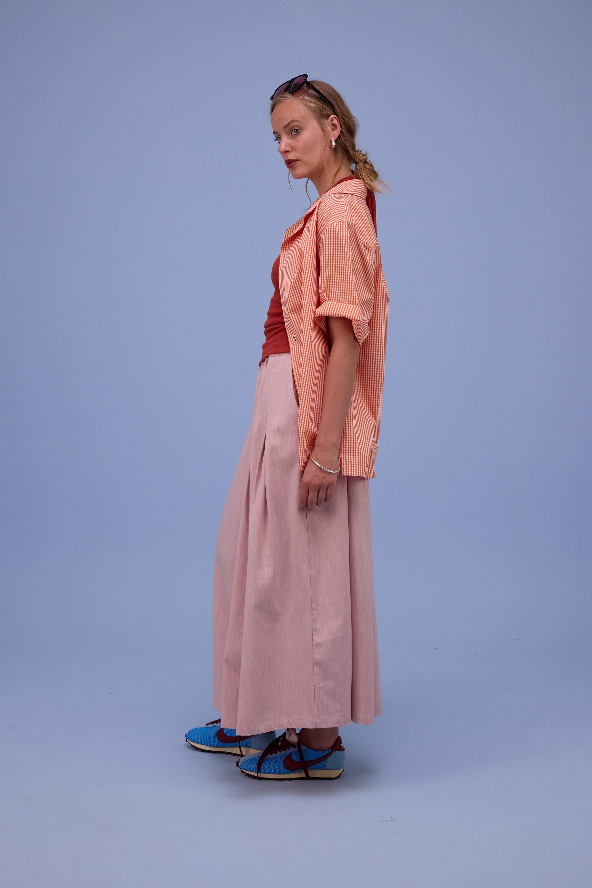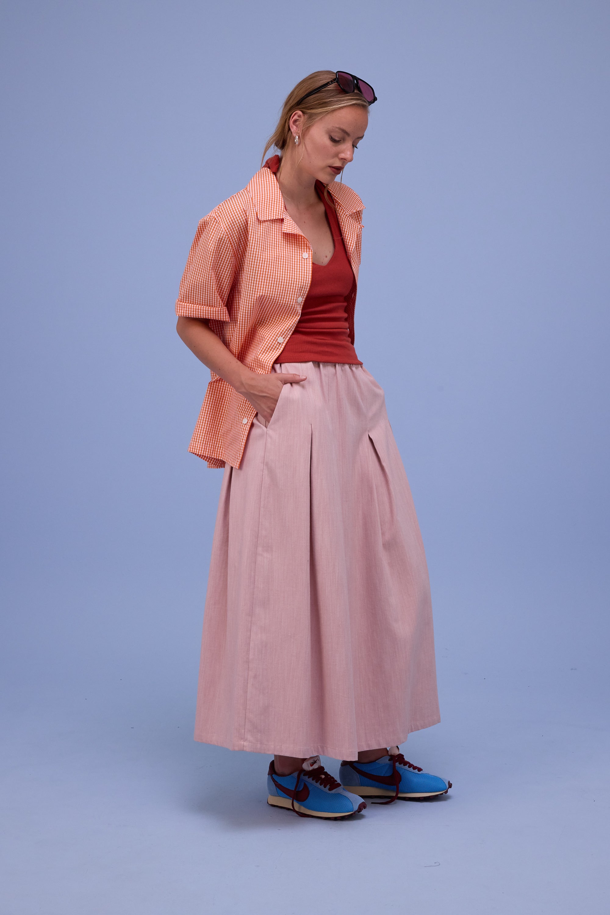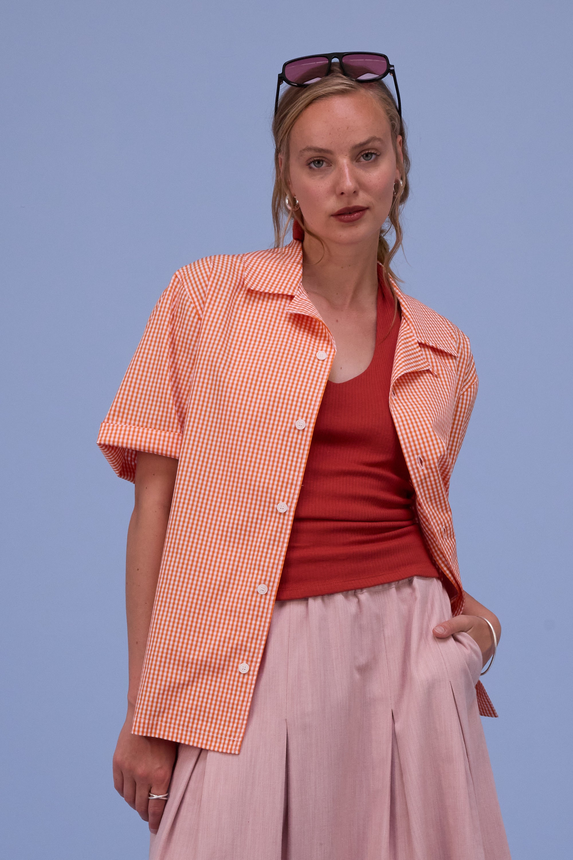 Unisex fit. Female model wears size 2, male model wears size 5.