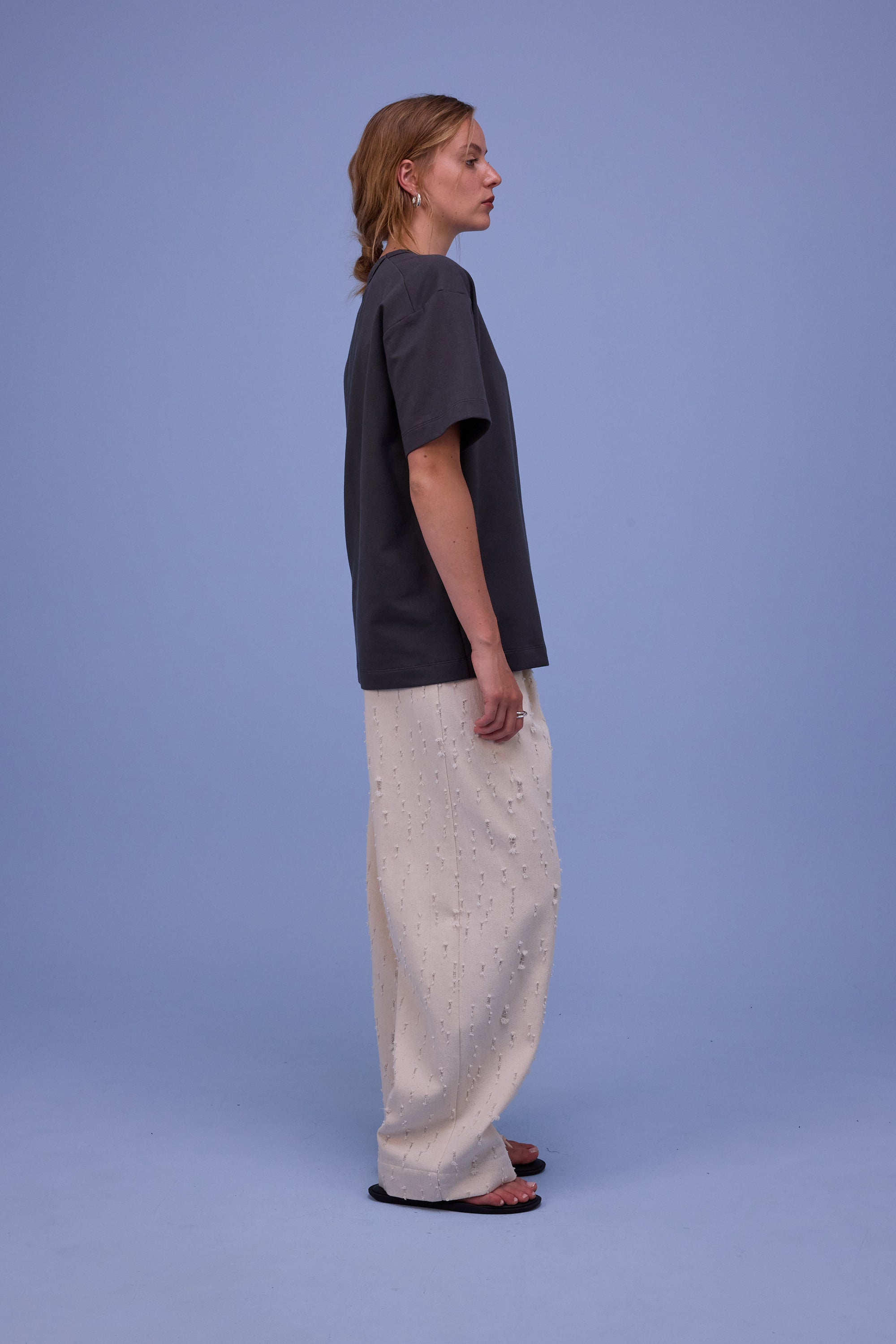 Loose-fitting T-shirt with dropped shoulders in brushed jersey, giving the T-shirt a certain weight while also providing the comfort of a stretch quality.