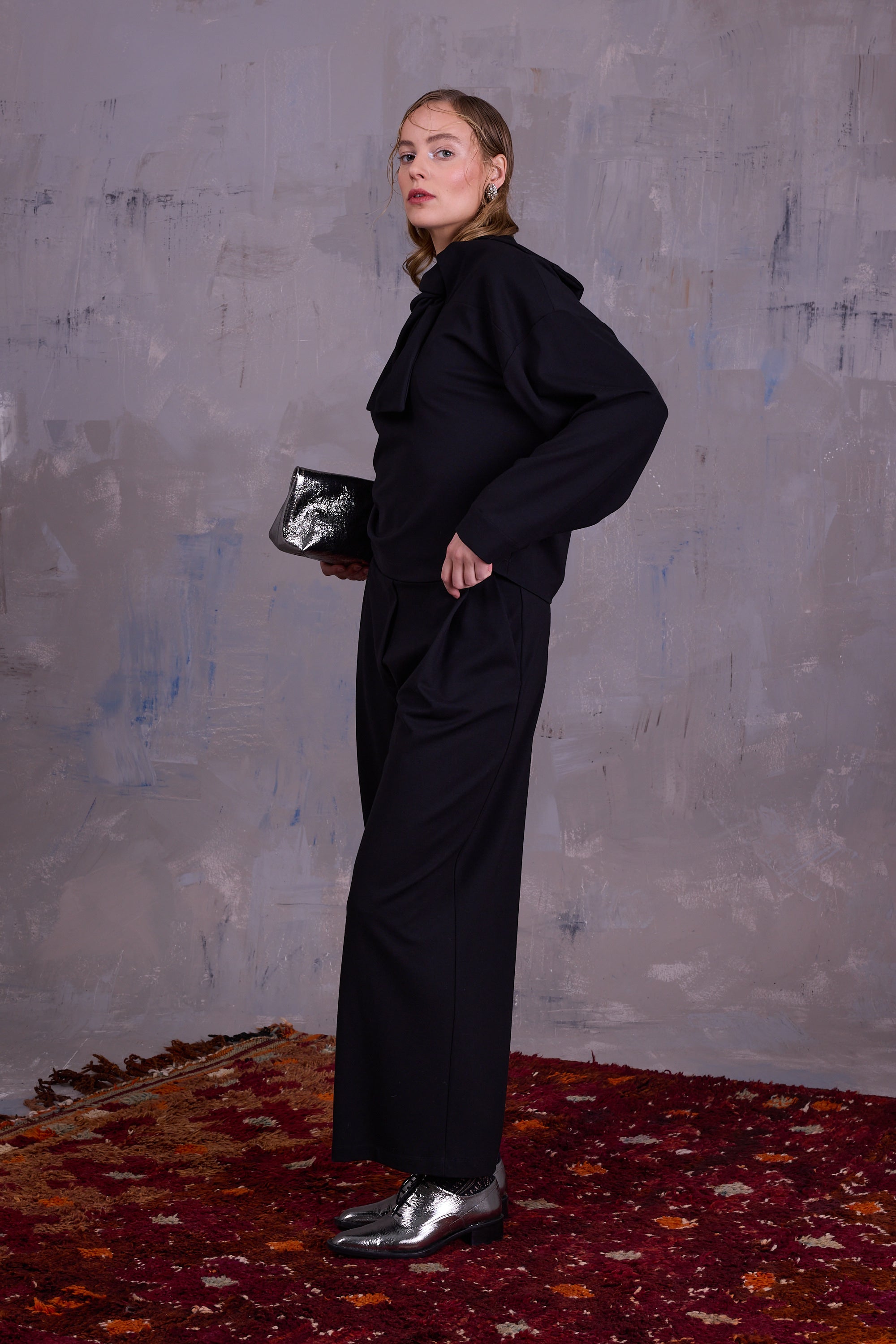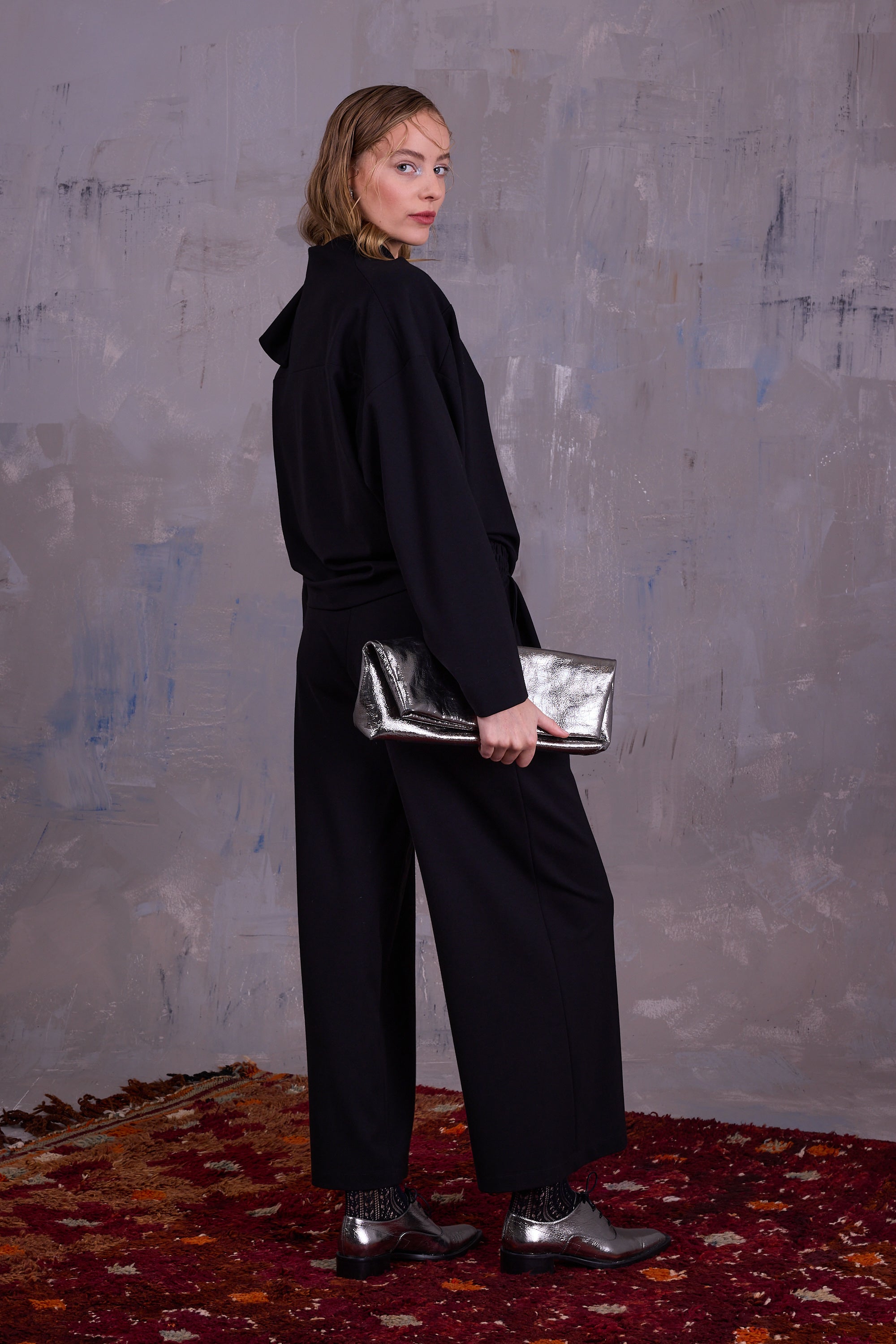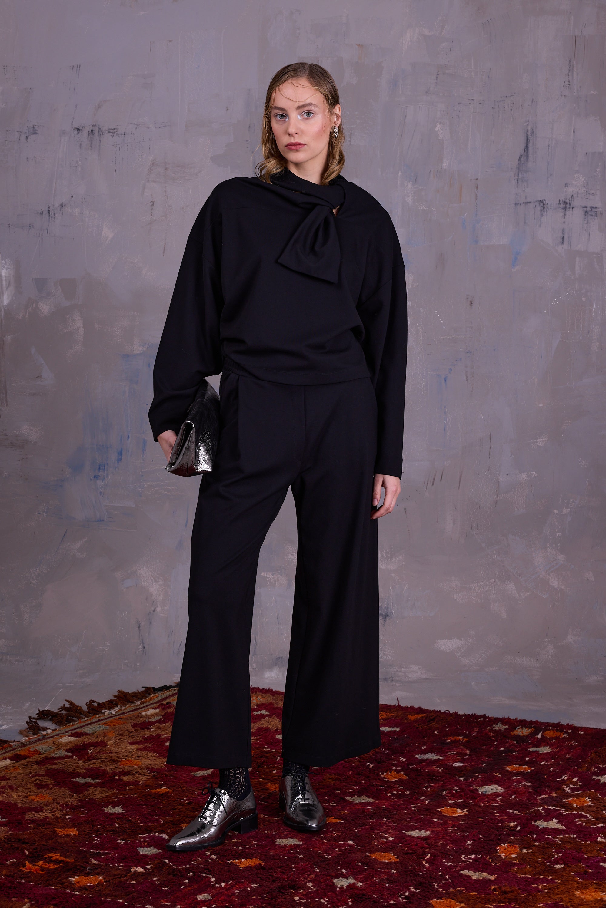 Valeur fixe dans la collection. Pantalon culotte large de style japonais avec 2 plis à la taille élastique. En tissu stretch bien connu de Nathalie Vleeschouwer.