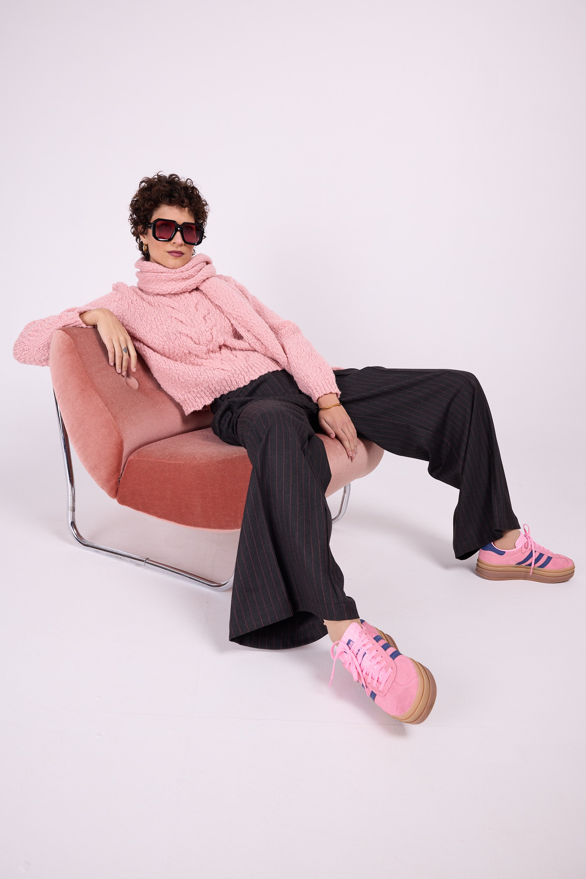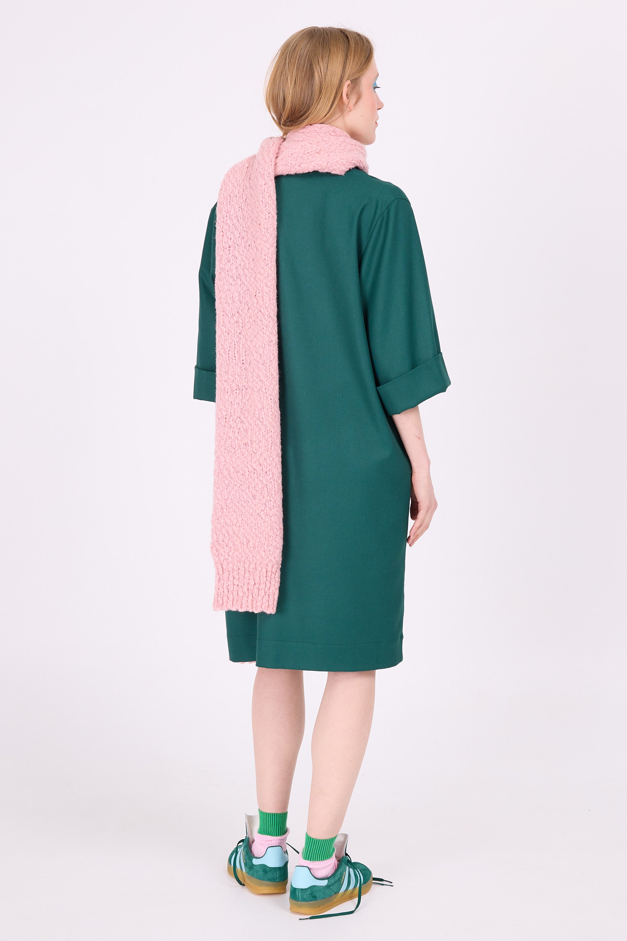 Écharpe délicieusement confortable en 'bubbly wool', un fil en mélange de laine avec une structure bouclée. Tricoté en Belgique. Belle en soi ou en combinaison avec un pull en même fil. Essaies-tu avec le pull Belgrado, Brasilia ou Bogota ?