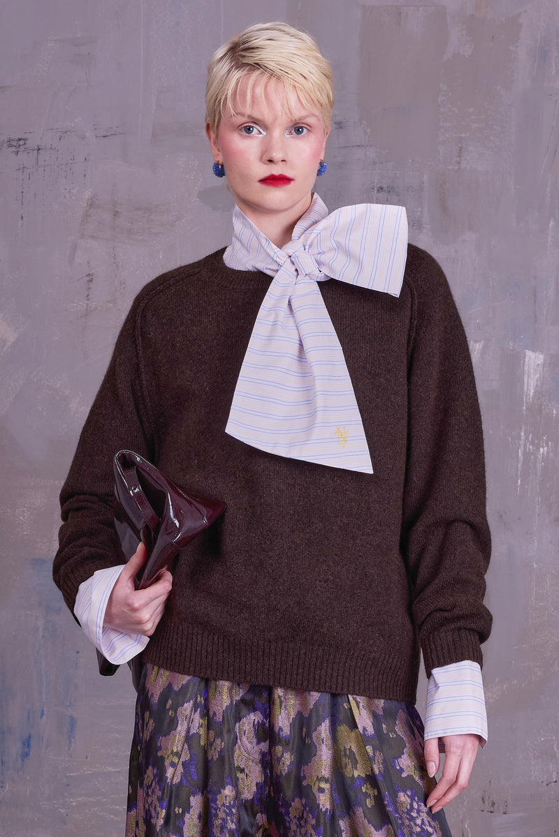 Pantalon volumineux avec plis et large ceinture élastique. Épuisé en un rien de temps la saison dernière et réintroduit cette saison dans de nouveaux tissus et couleurs.