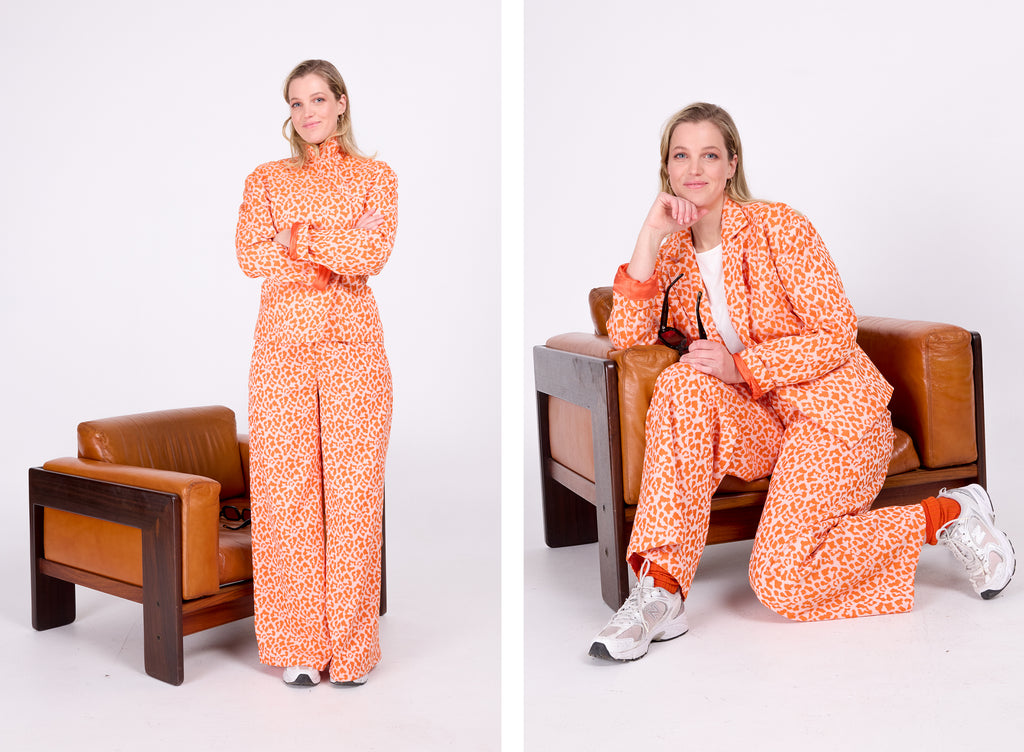 -"Ik ga voor deze broek en blazer in luipaardmotief. Supercomfortabel, maar ook een echt statement. Een typische Nathalie Vleeschouwer-look: vrouwelijk, elegant en super comfortabel."