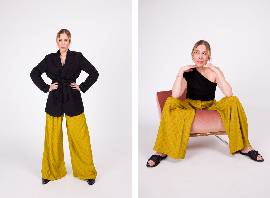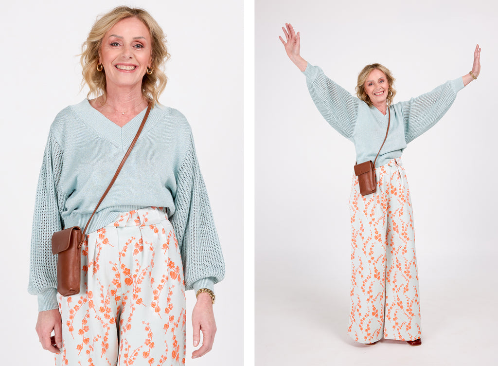 -"Deze outfit ademt pure, zomerse elegantie en geeft me een gevoel van vrijheid. Puur, omwille van de stoffen. Zomers, dankzij de kleurencombinatie. Het hoeft bovendien niet altijd een kleedje te zijn om elegant te zijn. Dankzij de uitstekende fitting van de broek voel ik me hier super in."