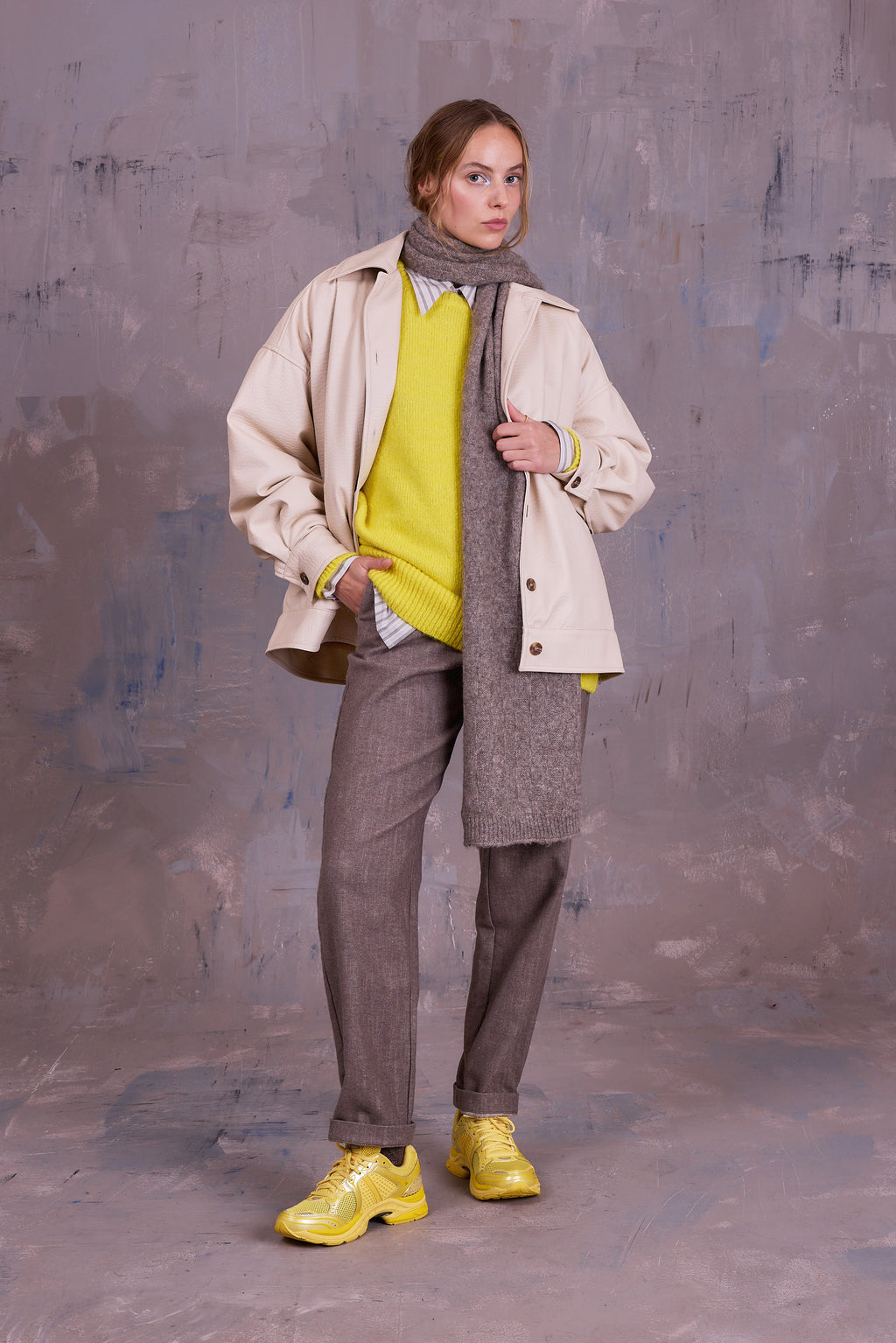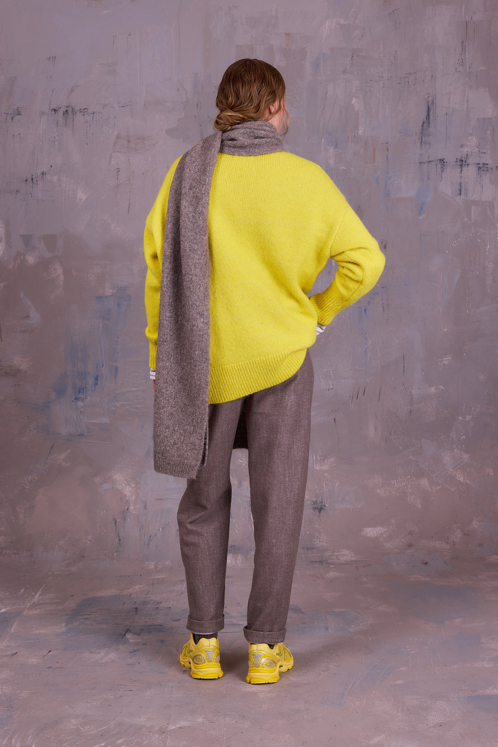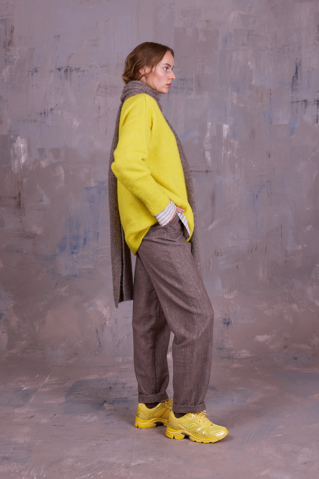 Trui gebreid in België in een donzig garen: een 100% natuurlijke mix van baby alpaca, katoen en merinowol.
