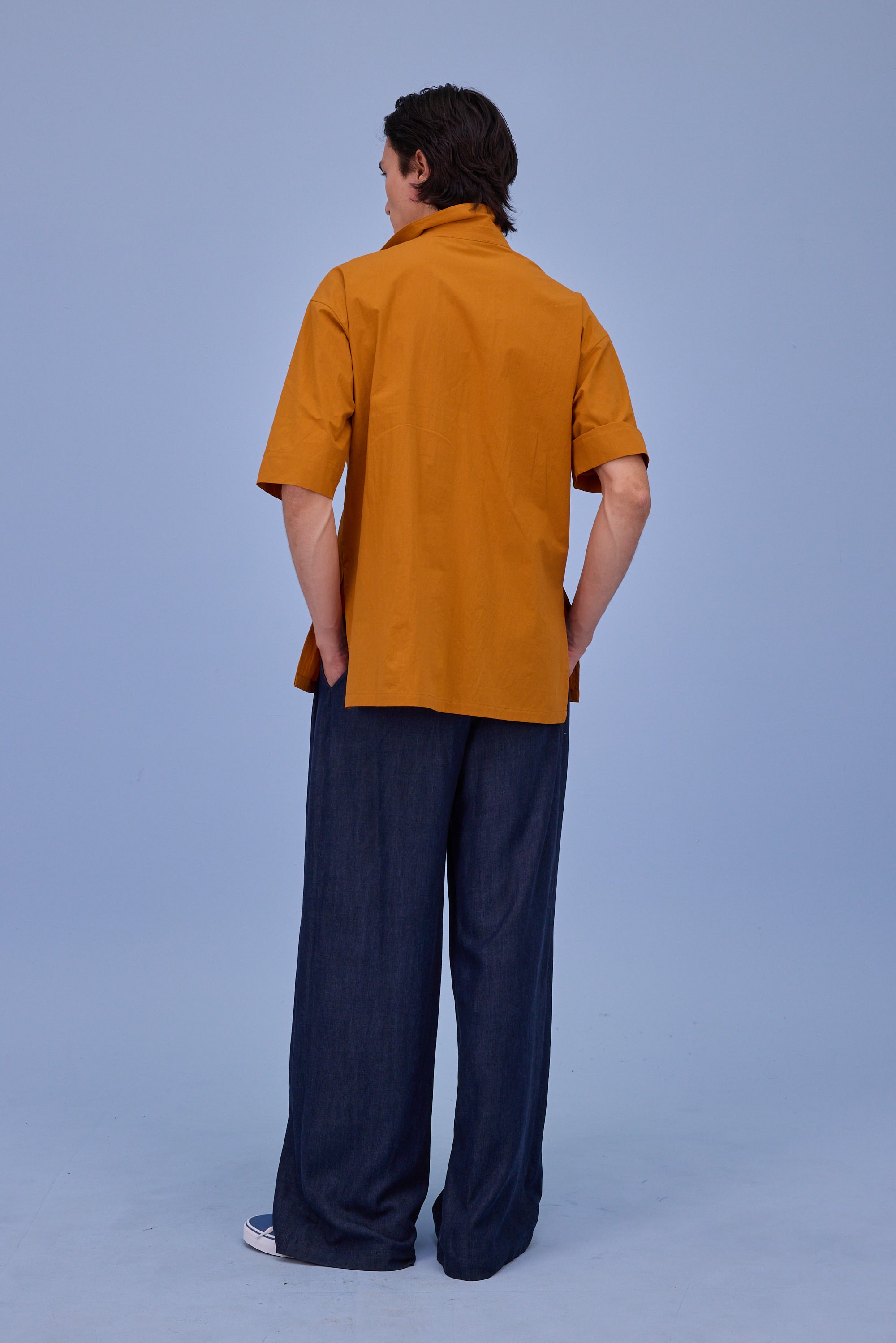 Recht hemd met uniseks pasvorm en een kenmerkende Nathalie Vleeschouwer twist: de knooprij is subtiel verplaatst en de hemdkraag bewoog mee, met asymmetrisch effect. Daarnaast is Hestia ook atypisch lang.