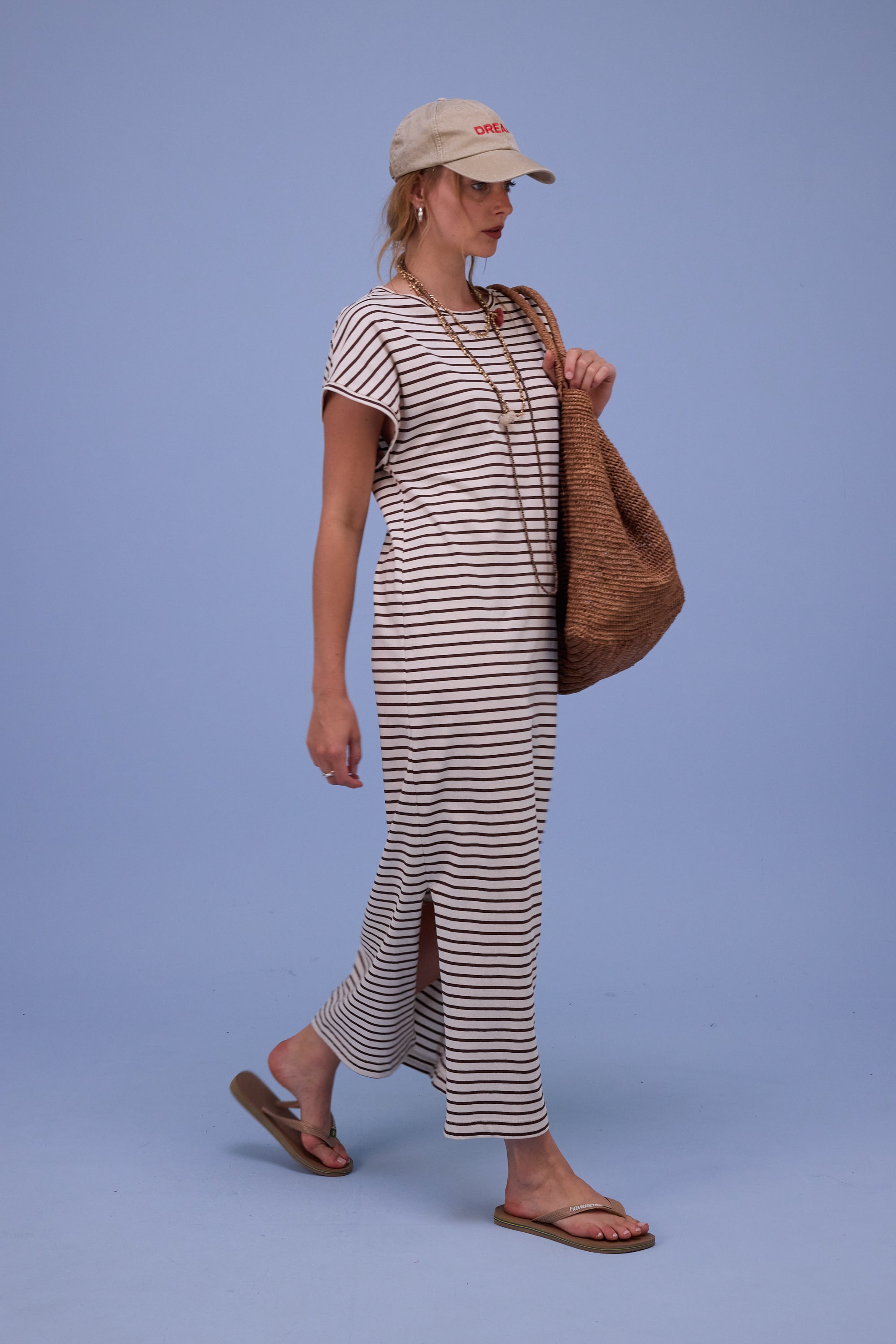 Denise jurk in brown breton stripes