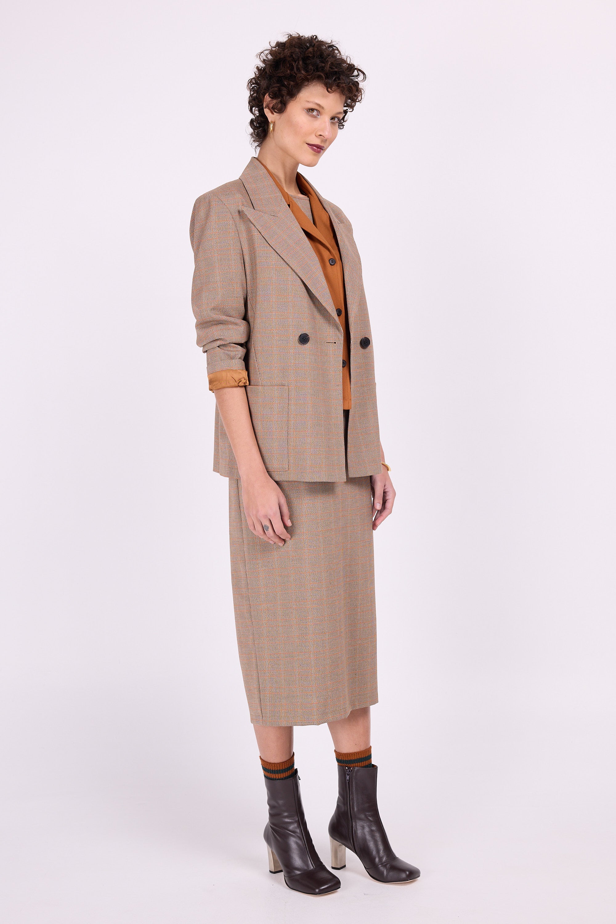 In der SS24-Kollektion eingeführt und aufgrund des Erfolgs jetzt zurück. Diese karierte Version verströmt „Opa-Chic“-Vibes und passt perfekt zum Kleid Emelia. Oder setzen Sie auf einen Stilmix und kombinieren Sie es mit dem Jeans-Jumpsuit.