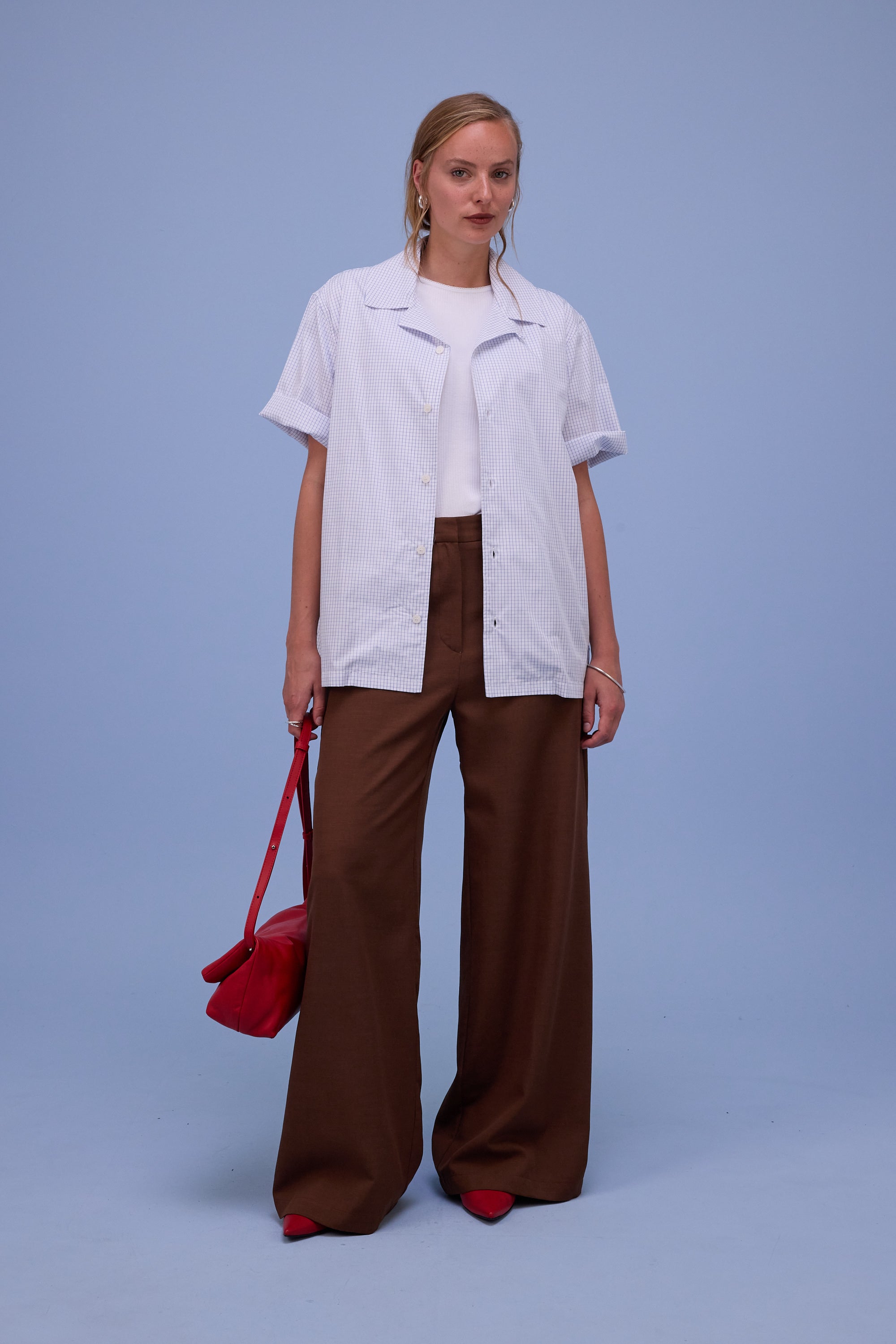 Kurzärmliges, gerade geschnittenes Hemd aus Baumwolle mit Karomuster.