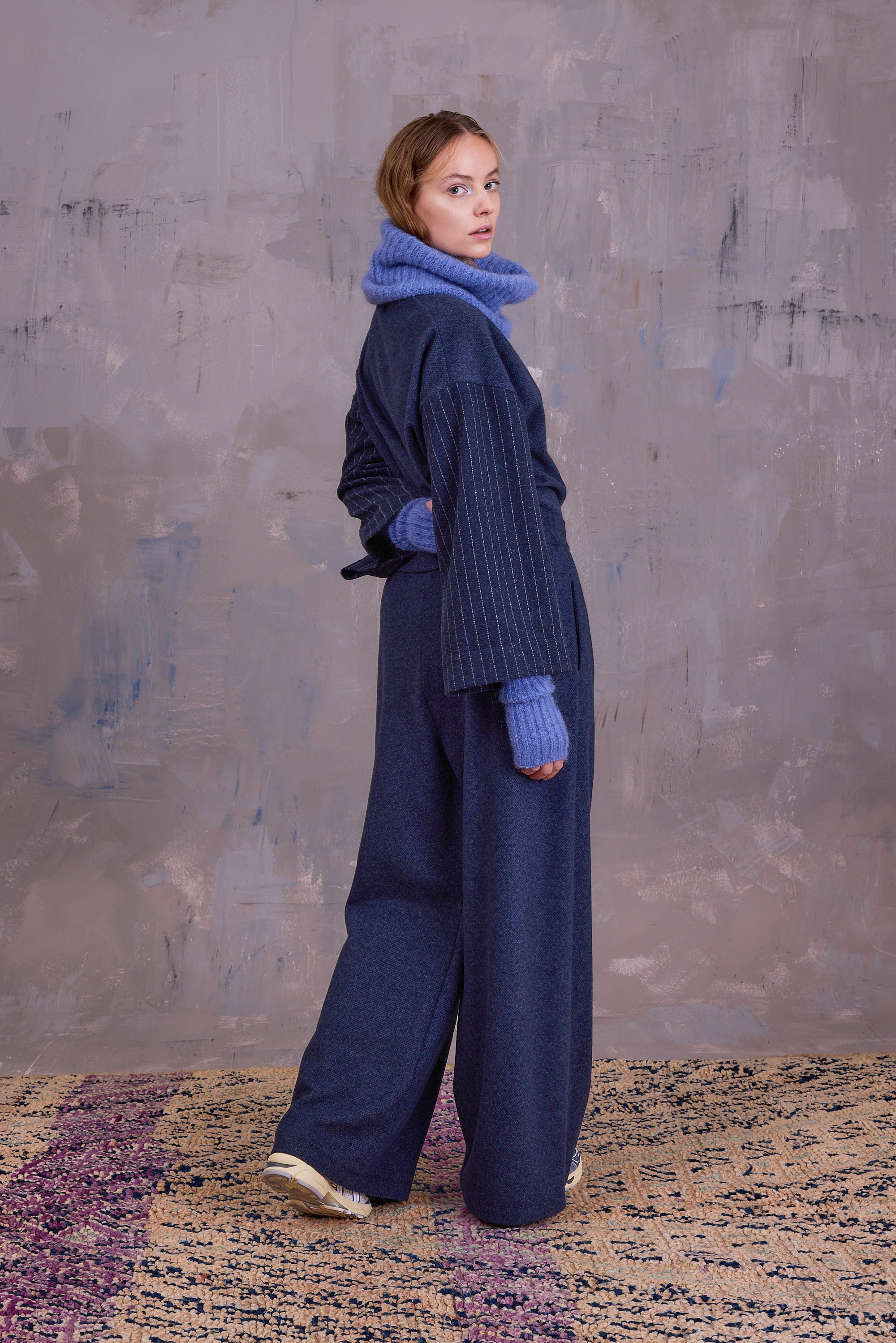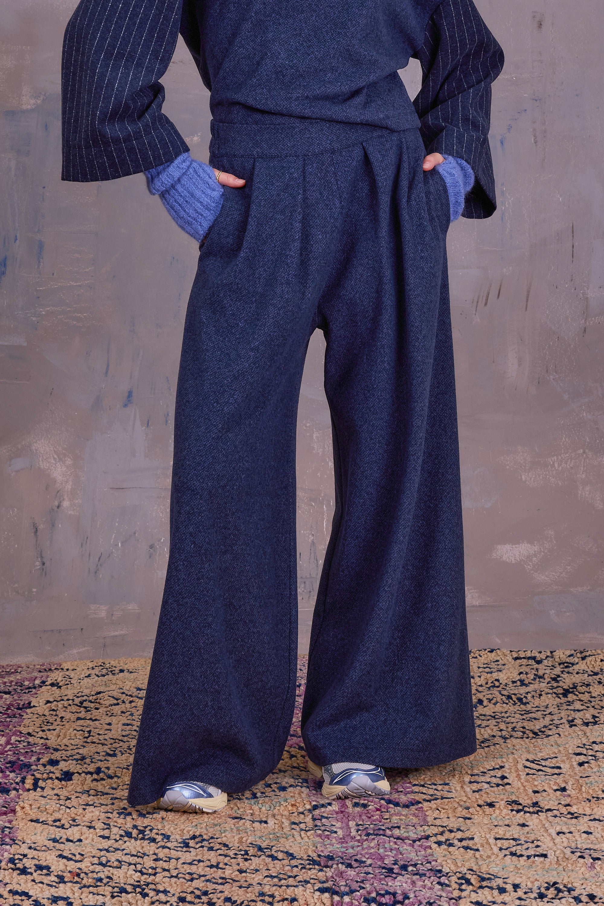 Voluminöse Hose aus fließendem Jacquard-Jersey-Stoff, wodurch sie fast wie ein Hosenrock aussieht, Schwester der Hose Clinton, aber jetzt aus Stretchstoff. Vervollständigen Sie den Look mit dem passenden Ed-Pullover.