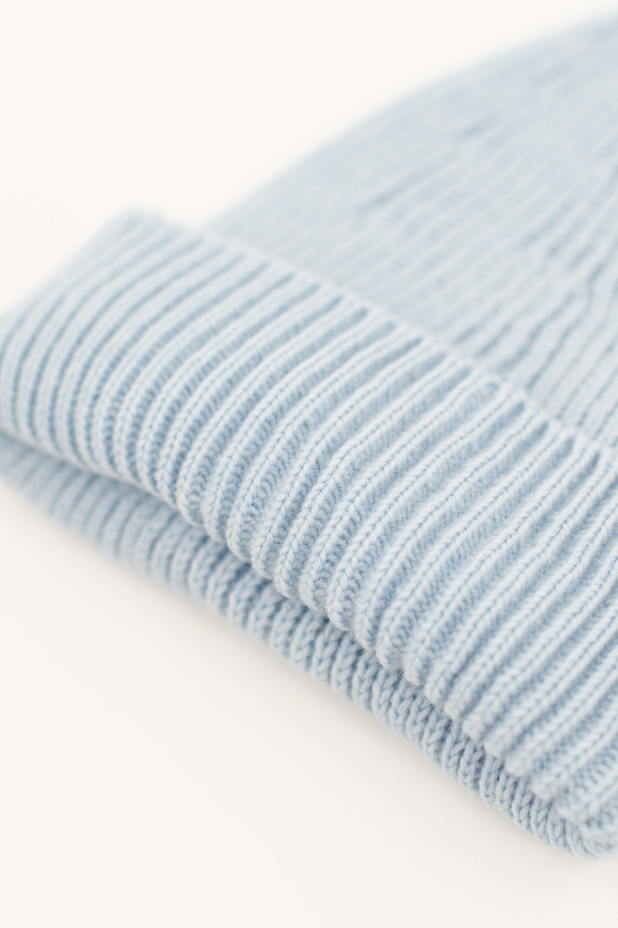 Gerippte Mütze mit breitem Umschlag. In Belgien aus einer Merinowollmischung gestrickt, wunderbar warm und doch weich. Tragen Sie es als Set in Kombination mit dem Wales-Schal und den Bein- und Armstulpen Warren.