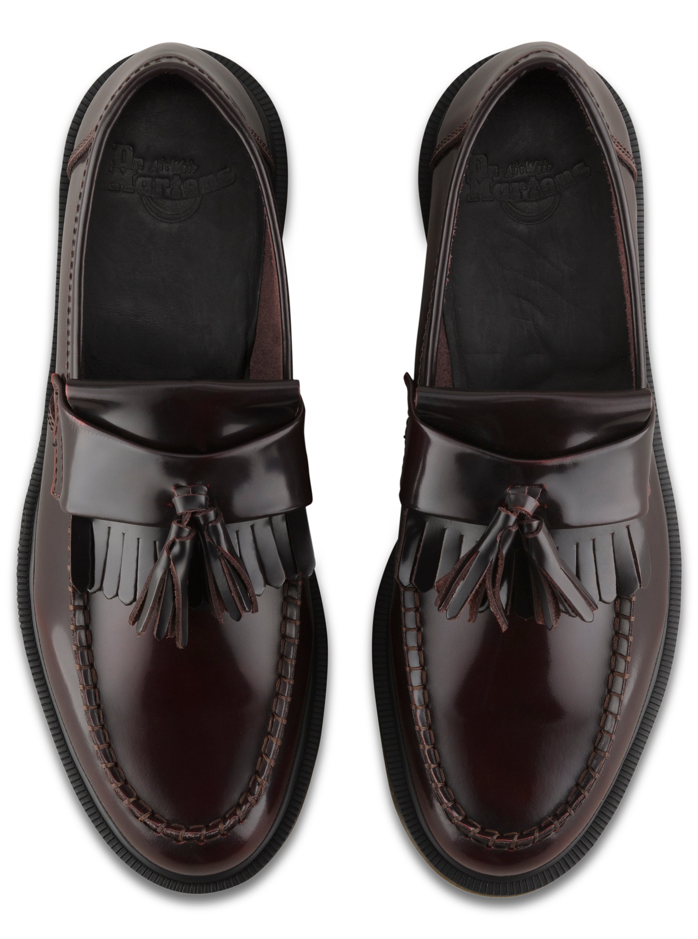 Der Loafer mit Quasten, ein Klassiker aus der Subkultur, wird hier in einer Ausführung aus Arcadia-Leder angeboten, traditionellem Vollnarbenleder, dessen Patina so poliert wurde, dass ein Unterton zum Vorschein kommt.