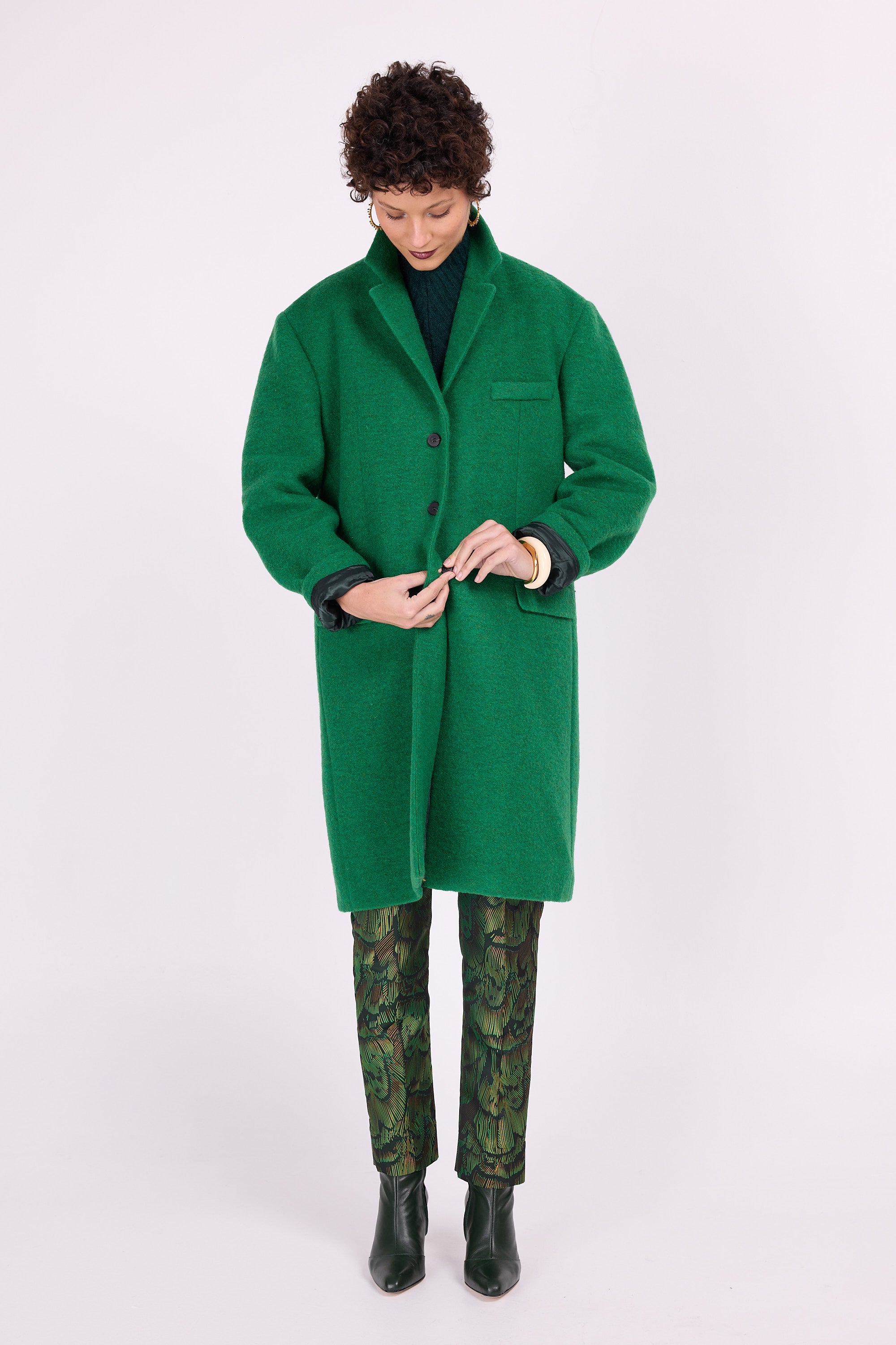 Klassische Jacke in einem sehr unkonventionellen Grasgrün. Der weiche Stoff besteht zu 80 % aus Wolle und verspricht somit ein warmer Begleiter für den Winter zu sein.