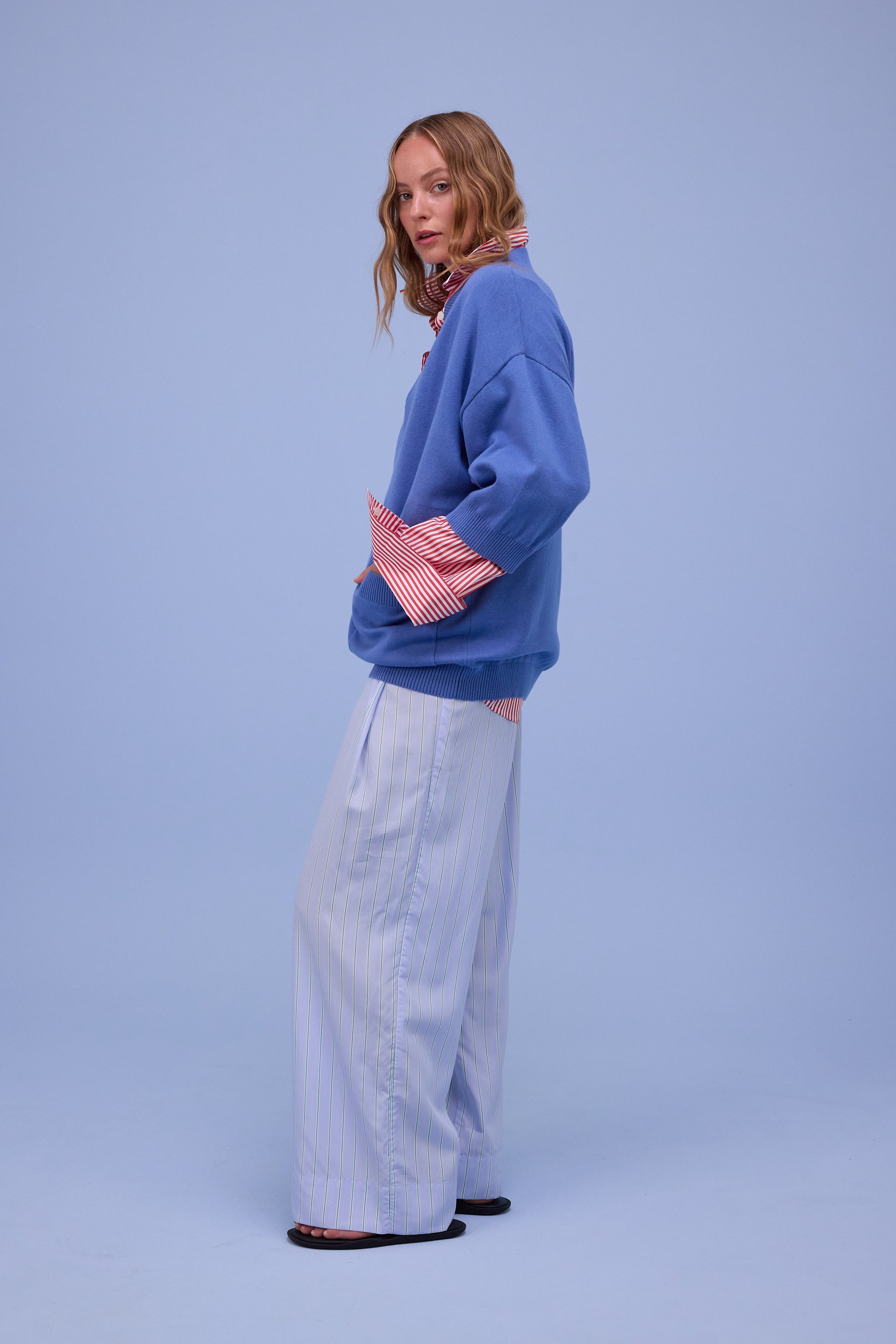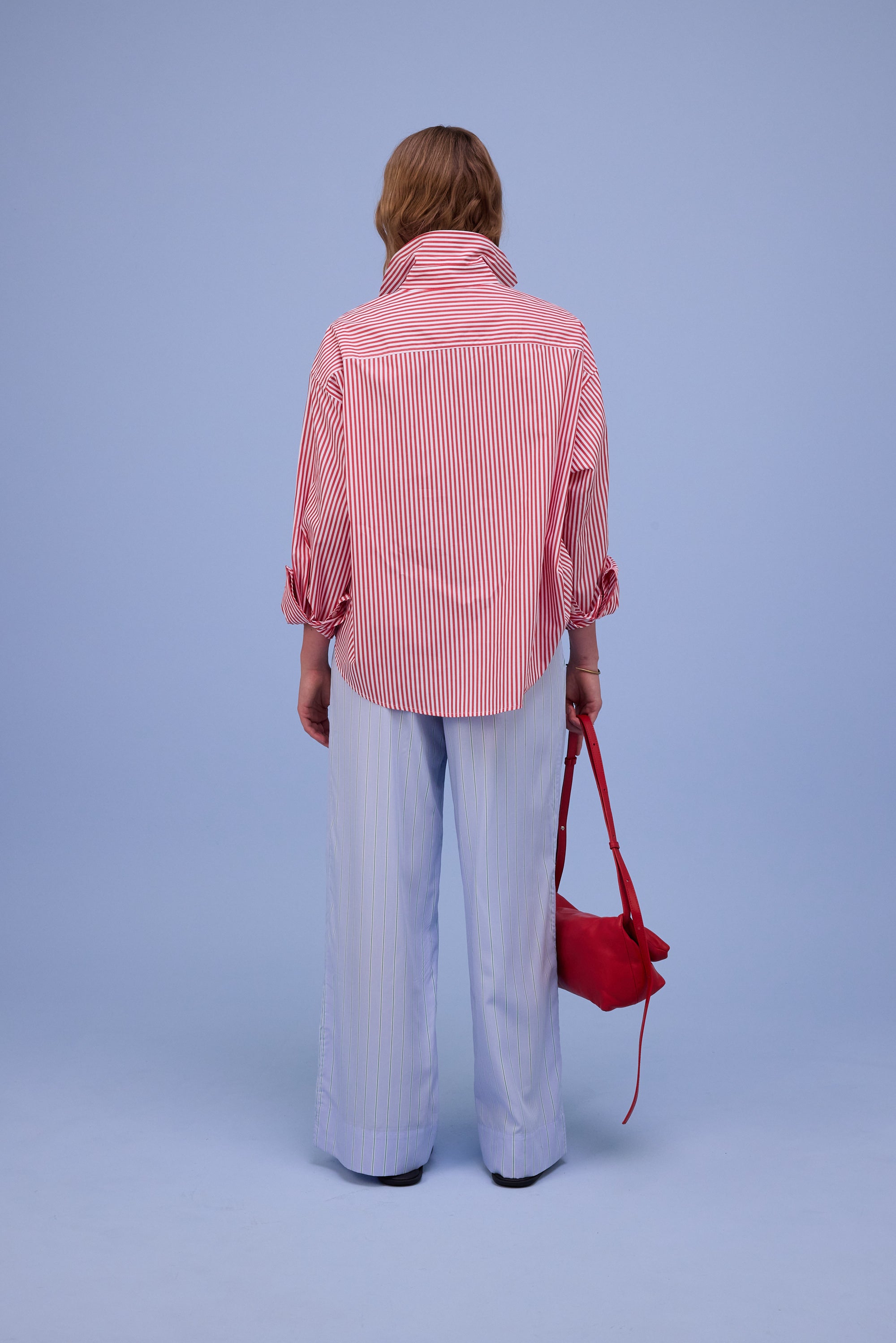 Weit geschnittenes Hemd mit überschnittenen Schultern und schöner Rundung am unteren Rücken. Hergestellt aus charakteristischen Streifen auf luftiger Baumwollqualität.
