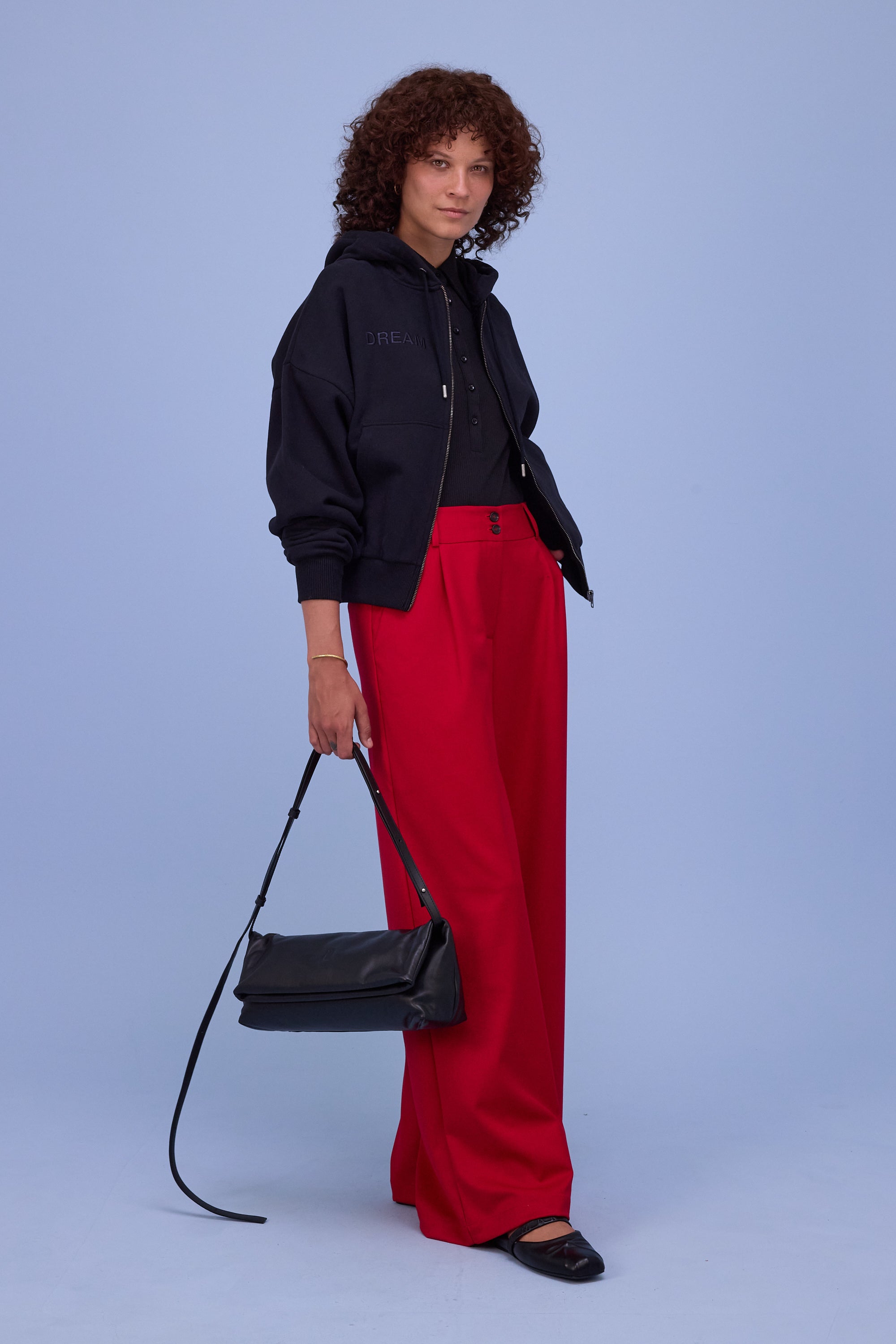 Kurzes Kapuzen-Sweatshirt aus angerauter Baumwolle. Auf der Brust ist DREAM dezent Ton-in-Ton als Talisman aufgestickt.